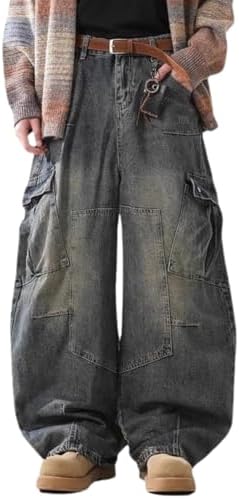 Baggy Barrel Jeans for Men Wide Leg Cargo Jeans Loose Distressed Denim Oversized Pants Fashion Casual Clothes