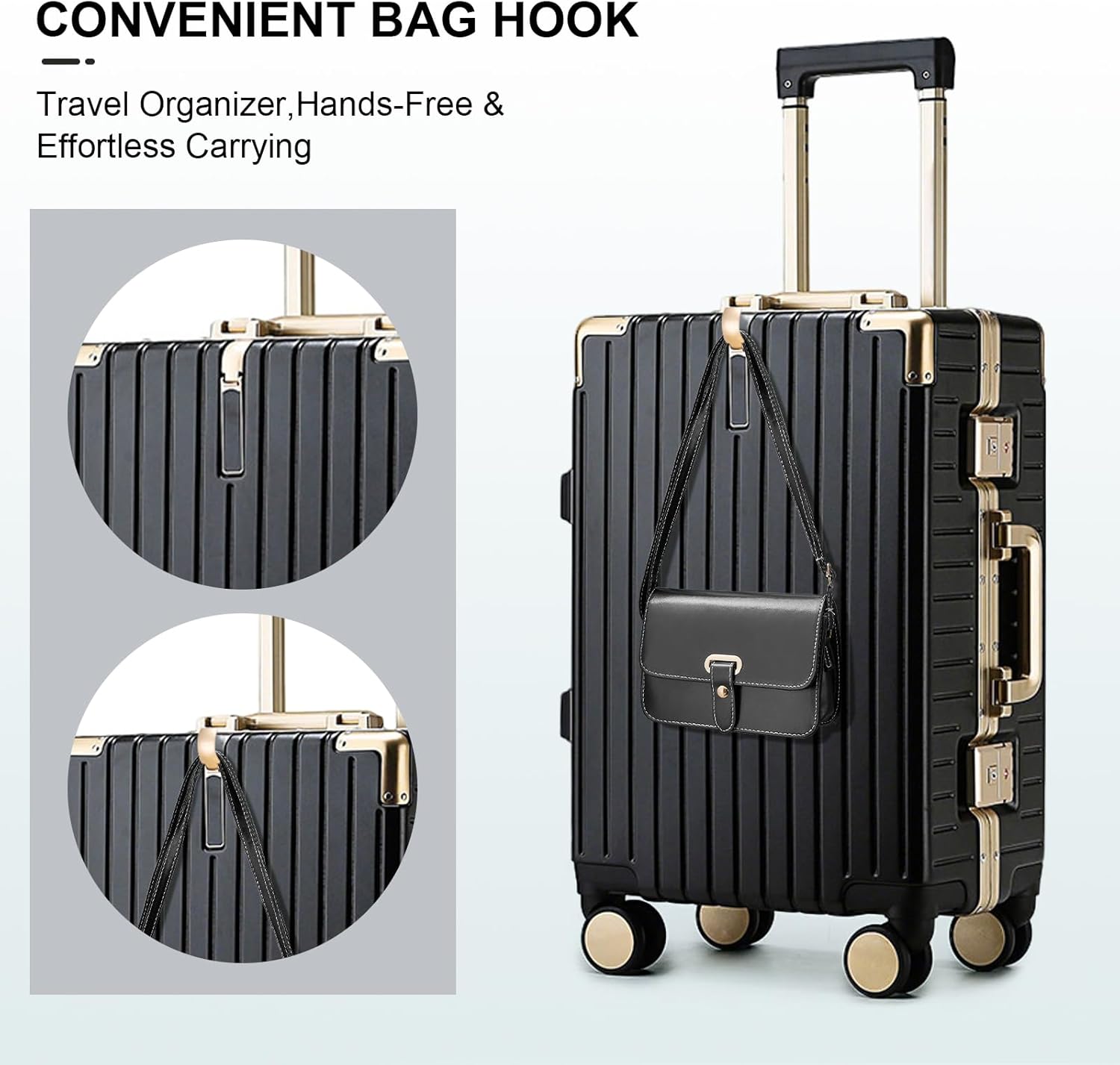 YYW Aluminium Frame PC-Polycarbonate Suitcase Carry On Suitcase, Lightweight Cabin Luggage, PC Hard Shell, Approved by Airlines, TSA Lock, Quiet Wheels (Black,20 inch Cabin)
