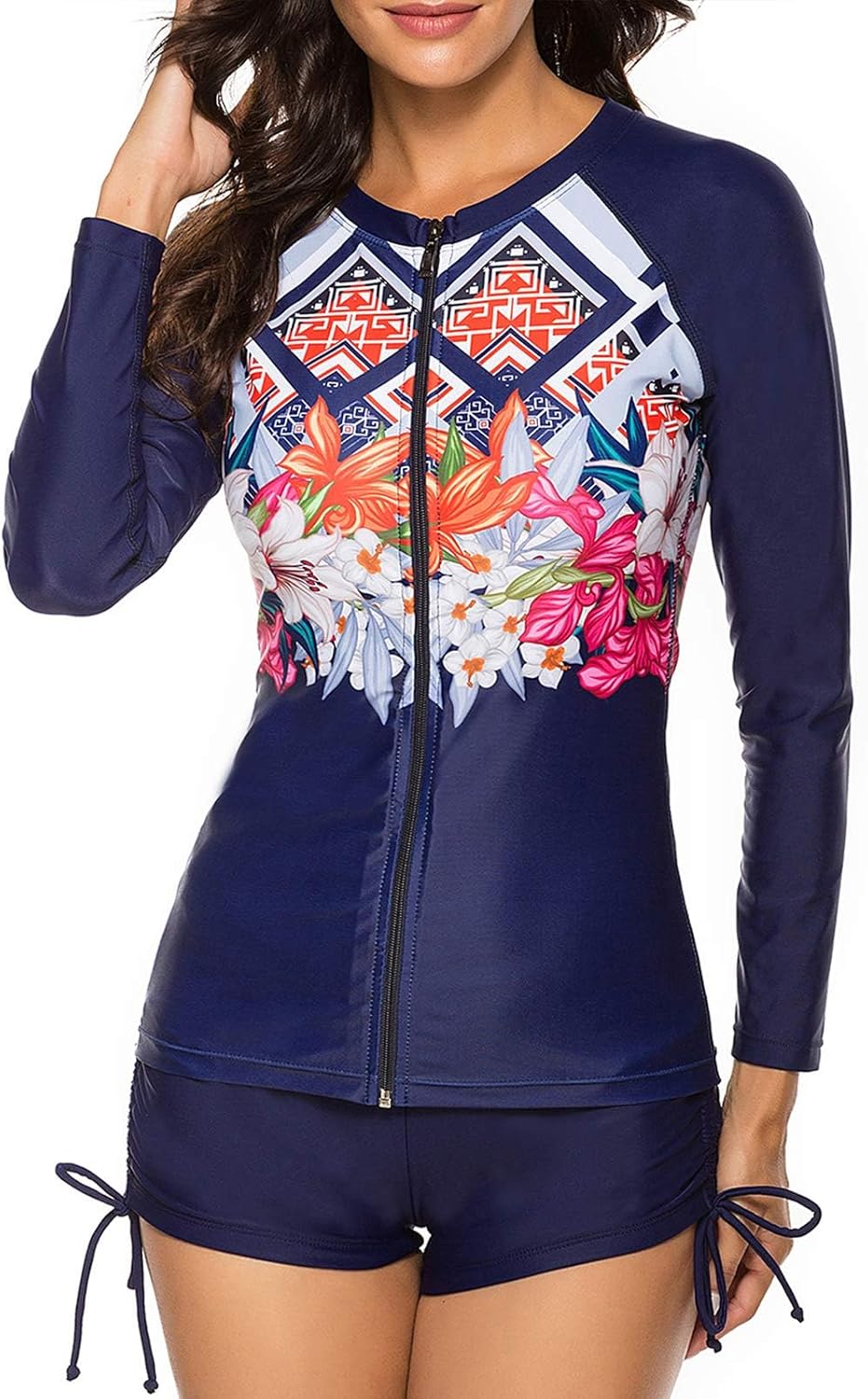 Century Star Long Sleeve Swimsuits Women 2025 Rash Guard UPF 50+ Two Piece Surfing Modest Full Coverage Bathing Suit Swimwear