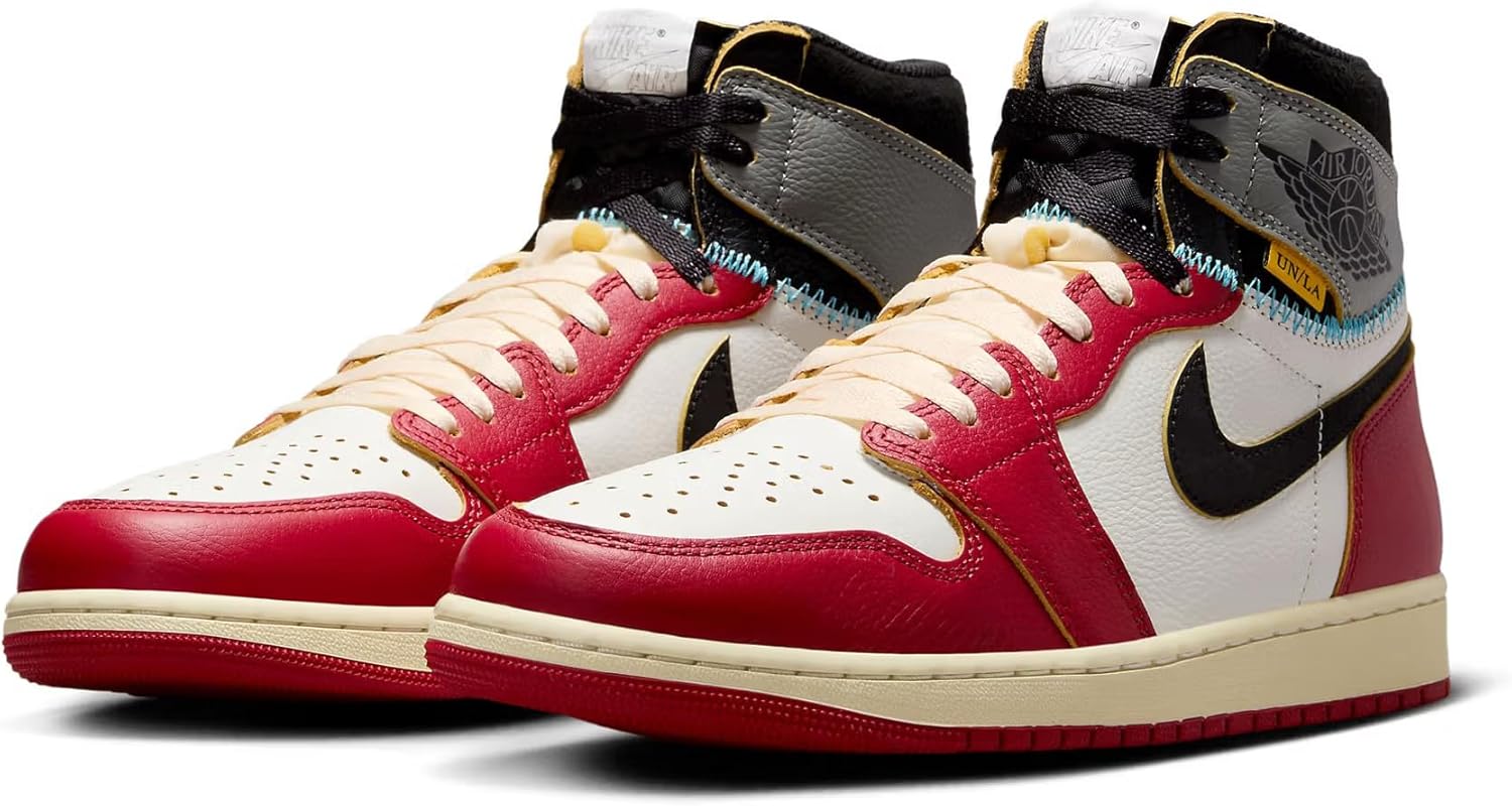 The Jordan 1 Retro High OG SP Union LA Chicago Shadow brings two legendary colorways together in a seamless blend of heritage and innovation. Union LA continues its signature design approach, merging the iconic Chicago red-and-white leather base with the Shadow grey and black ankle collar, creating a striking contrast. The transition between the two sections is accentuated by exposed University Blue stitching, a nod to the craftsmanship behind this unique fusion. Vintage details elevate the design, with an "aged" sail midsole, a paper-like tongue tag, and exposed foam tongue seams, all adding to the sneaker’s retro aesthetic. The yellow Union LA tag on the collar remains a signature touch, reinforcing the brand’s signature deconstructed-meets-luxury approach. Complementing the premium leather construction, mix-and-match lacing options provide added versatility, allowing wearers to put their own spin on the silhouette.