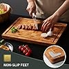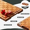 Knife-Safe Surface for Edge Preservation: Our bamboo cutting board features a durable and thick surface. Meticulously polished to be ultra-smooth and flat, it has no burrs, cracks, or splinters. The cutting board is gentle on knives, reducing dulling and blade damage. Whether using a serrated knife for bread or a chef's knife for vegetables, the wood cutting board prevents blades from dulling quickly, saving you time on sharpening and allowing more time for enjoying your cooking.