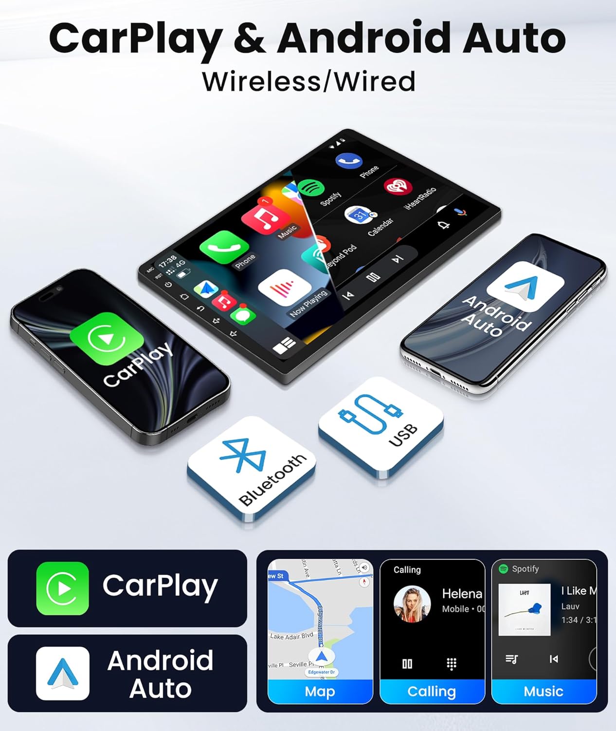 【Wireless/Wired Carplay & Android Auto】Car stereo system supports CarPlay and Android Auto, allowing you to easily wake up Siri or Google Assistant, making it easier to access your smartphone functions including music, map navigation, calls, notifications, messages and more and more while keeping your hands free for safe driving