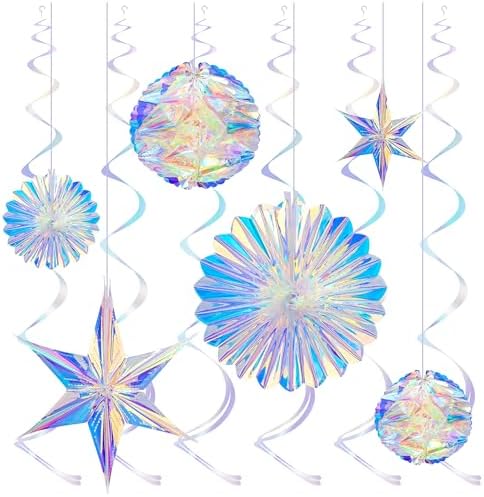 Versatile Hanging Options: Lightweight and flexible, this iridescent party supply set can be hung on walls, windows, ceilings, doors, Christmas trees, or classroom spaces. Easily enhances any area with layers of festive charm