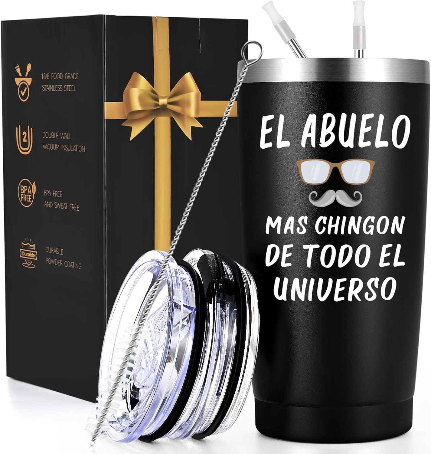 Qtencas Regalos Dia Del Padre - 20 oz El Abuelo Mas Chingon Del Universo Insulated Travel Tumbler, Perfect Birthday Christmas Father's Day Gift in Spanish, Abuelo Tumbler for Grandpa