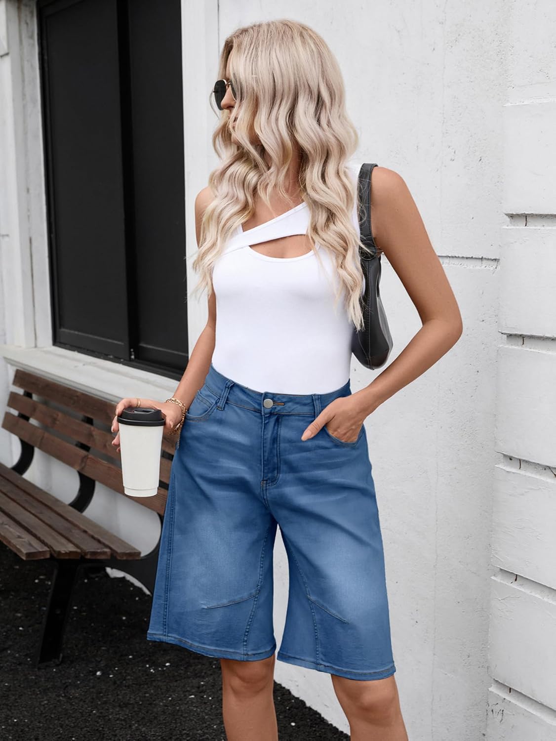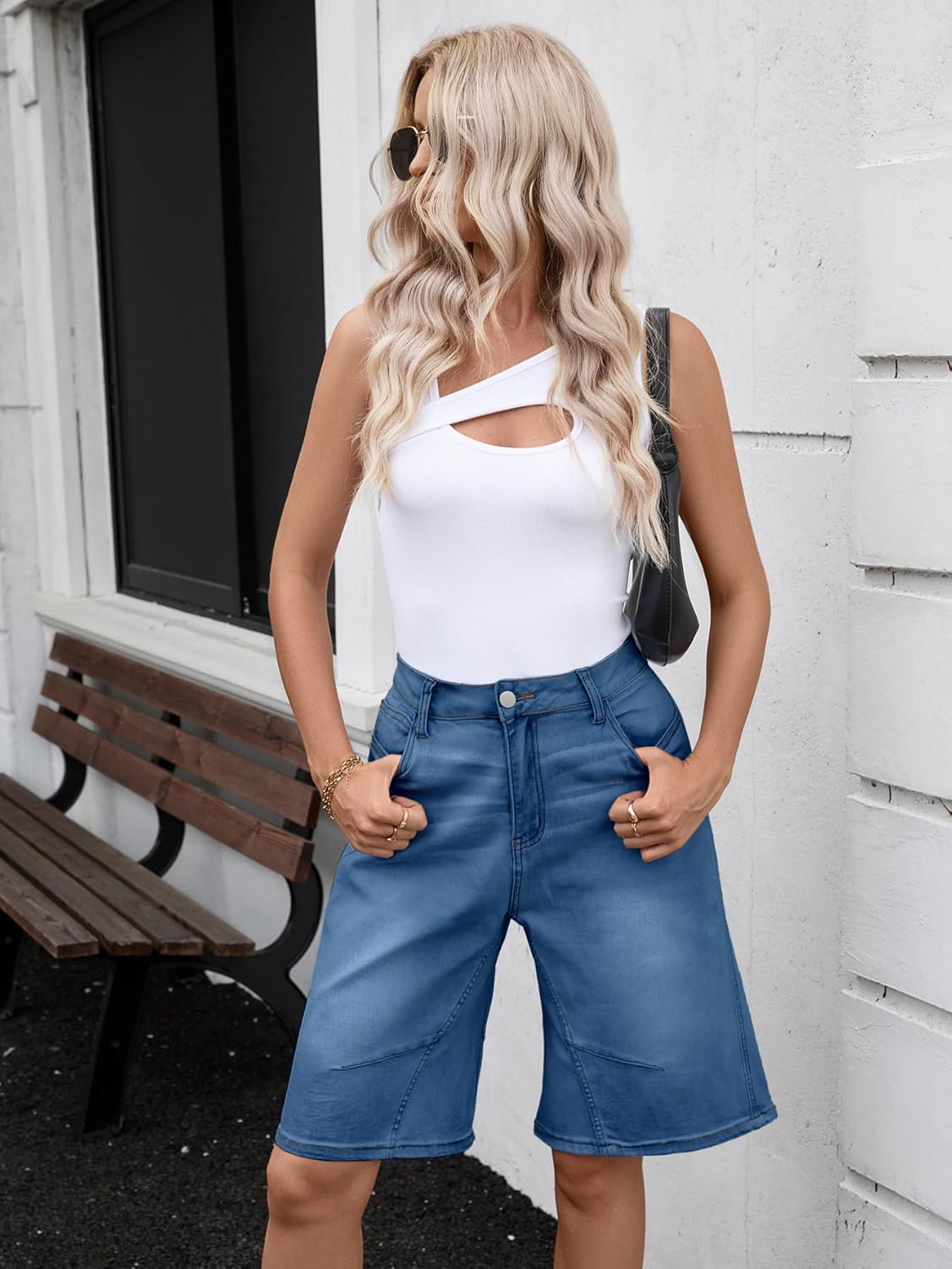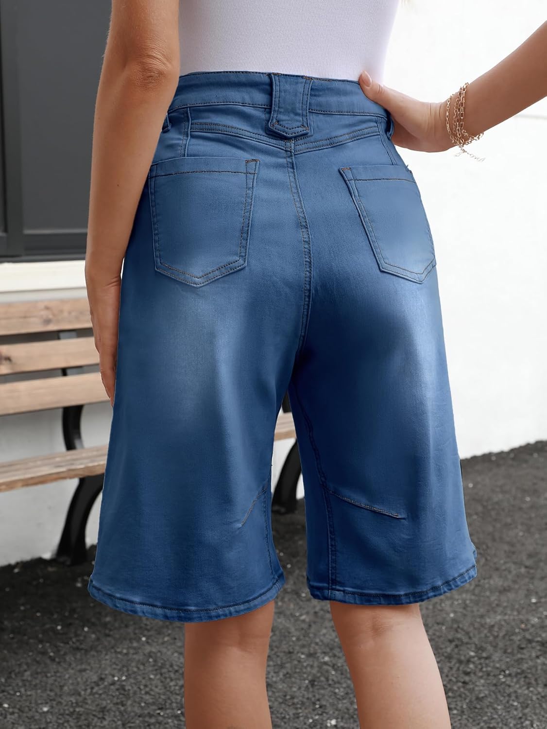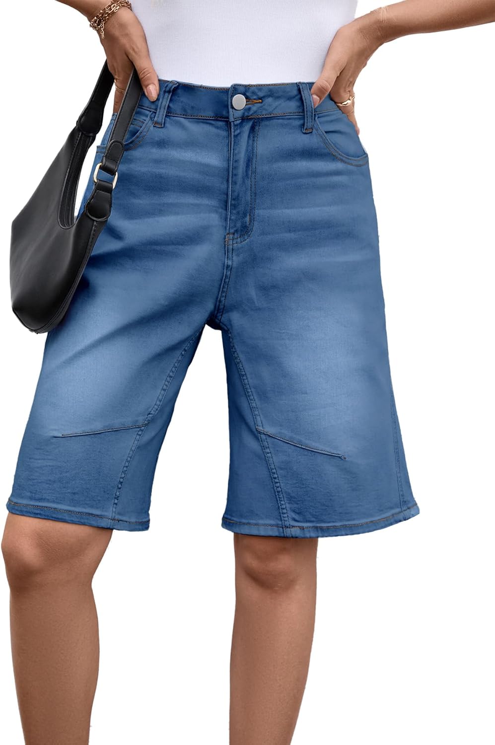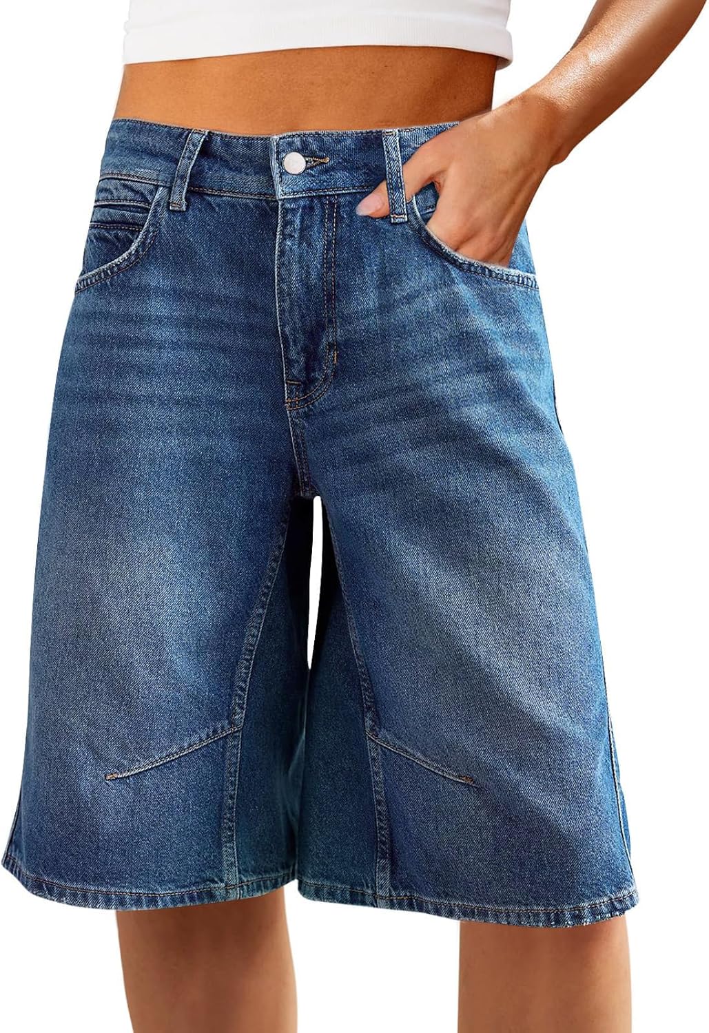 VICHYIE Womens Summer Denim Wide Leg Casual Loose Mid-Low Rise Jorts Bermuda Knee Length Jeans Short Pants