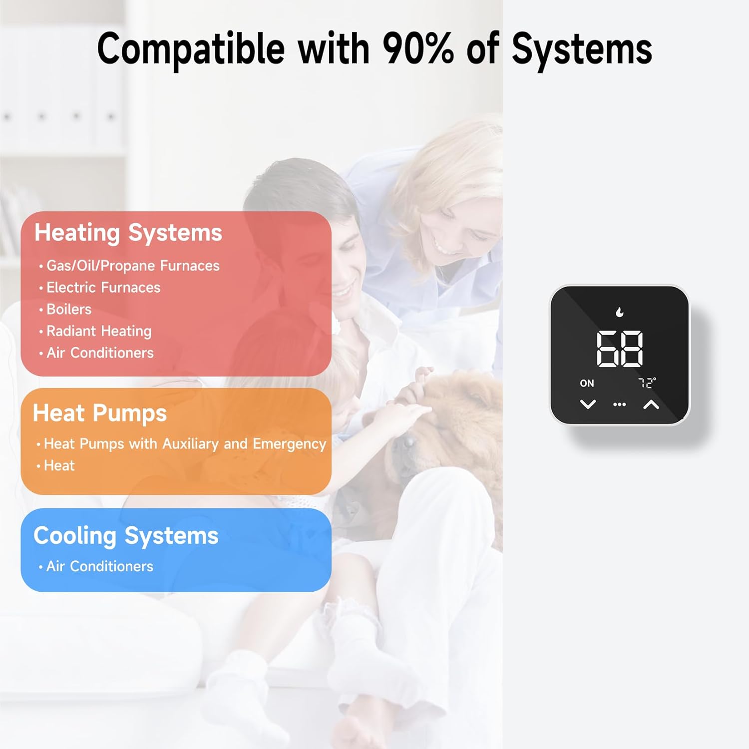 The EdgeAnt Thermostat is compatible with most 24V systems, including furnaces, air conditioners, boilers, and heat pumps with AUX or Emergency Heat. It is compatible with 2.4GHz WiFi only; 𝐂ommon wire (𝐂-𝐖ire) is required!!!