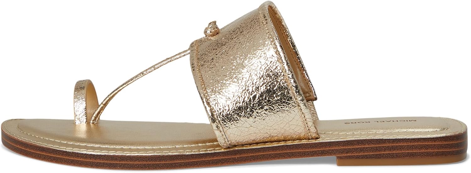 Step into a world of elegance and comfort with the Michael Kors Ashtin Women's Leather Sandals, designed for the discerning fashionista who values both style and practicality. Crafted from premium leather, these slip-on sandals exude sophistication, perfect for transitioning from casual outings to beach days effortlessly. The signature jacquard strap and toe ring detailing add a touch of class to any ensemble, while the extra-padded faux leather insole ensures a comfortable fit for all-day wear. Whether you're pairing them with a sundress for a day at the park or with your favorite jeans for a laid-back barbecue, these sandals promise to elevate your look. The open round toe design offers breathability and versatility, making them an essential addition to any wardrobe. With a robust rubber outsole providing excellent grip and stability, these sandals are ideal for navigating various terrains with ease. The polyurethane lining adds a soft touch to your feet, enhancing overall comfort. Embrace the ultimate in footwear luxury and let the Michael Kors Ashtin Sandals be your go-to choice for style and comfort, no matter the occasion. Perfect for the fashion-forward woman who embraces elegance without compromising on practicality.