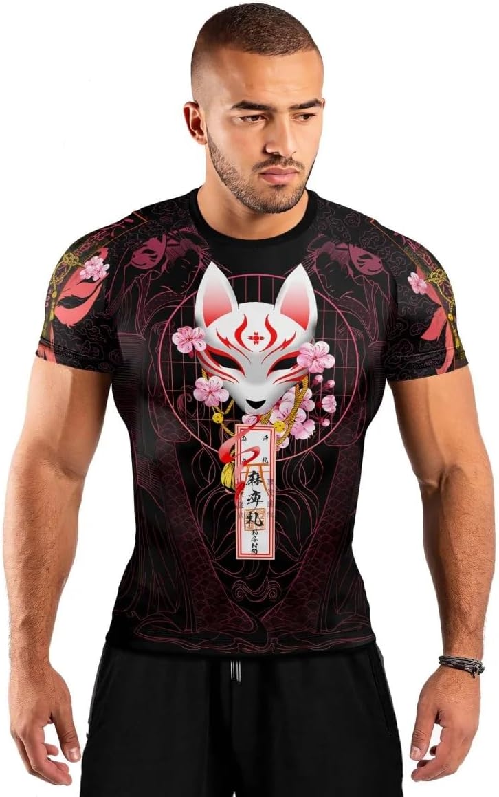 Legendary Samurai Men's Rash Guard Shirts Short Sleeve, Baselayer Compression Shirt for Jiu Jitsu MMA