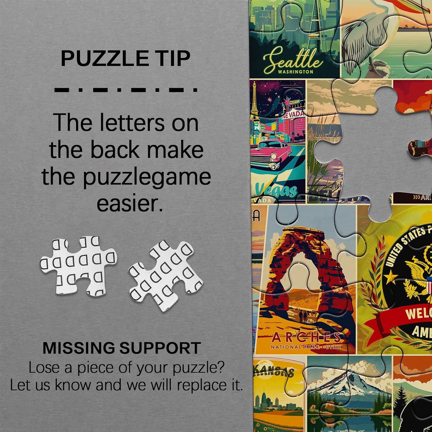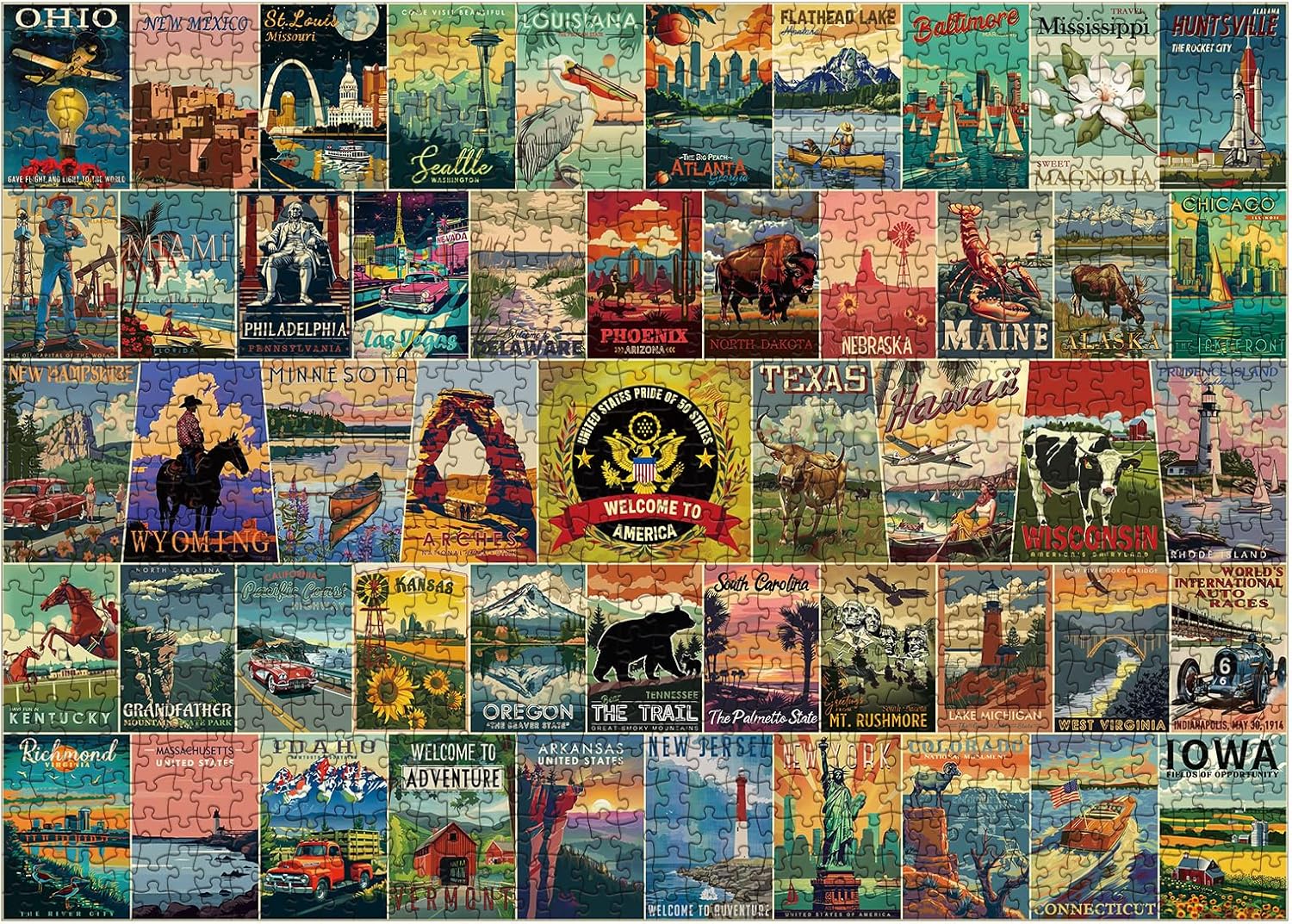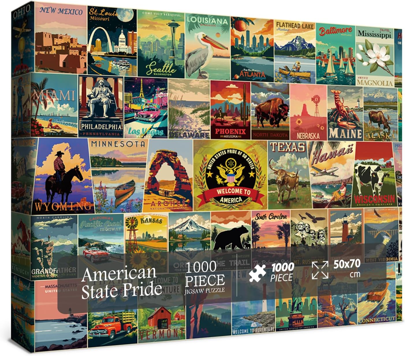 BBOLDIN Vintage United States Pride Puzzles for Adults 1000 Pieces, American Travel Landmarks Landscape Jigsaw Puzzles, Pretty Nature Alaska Arizona Scenic Puzzle