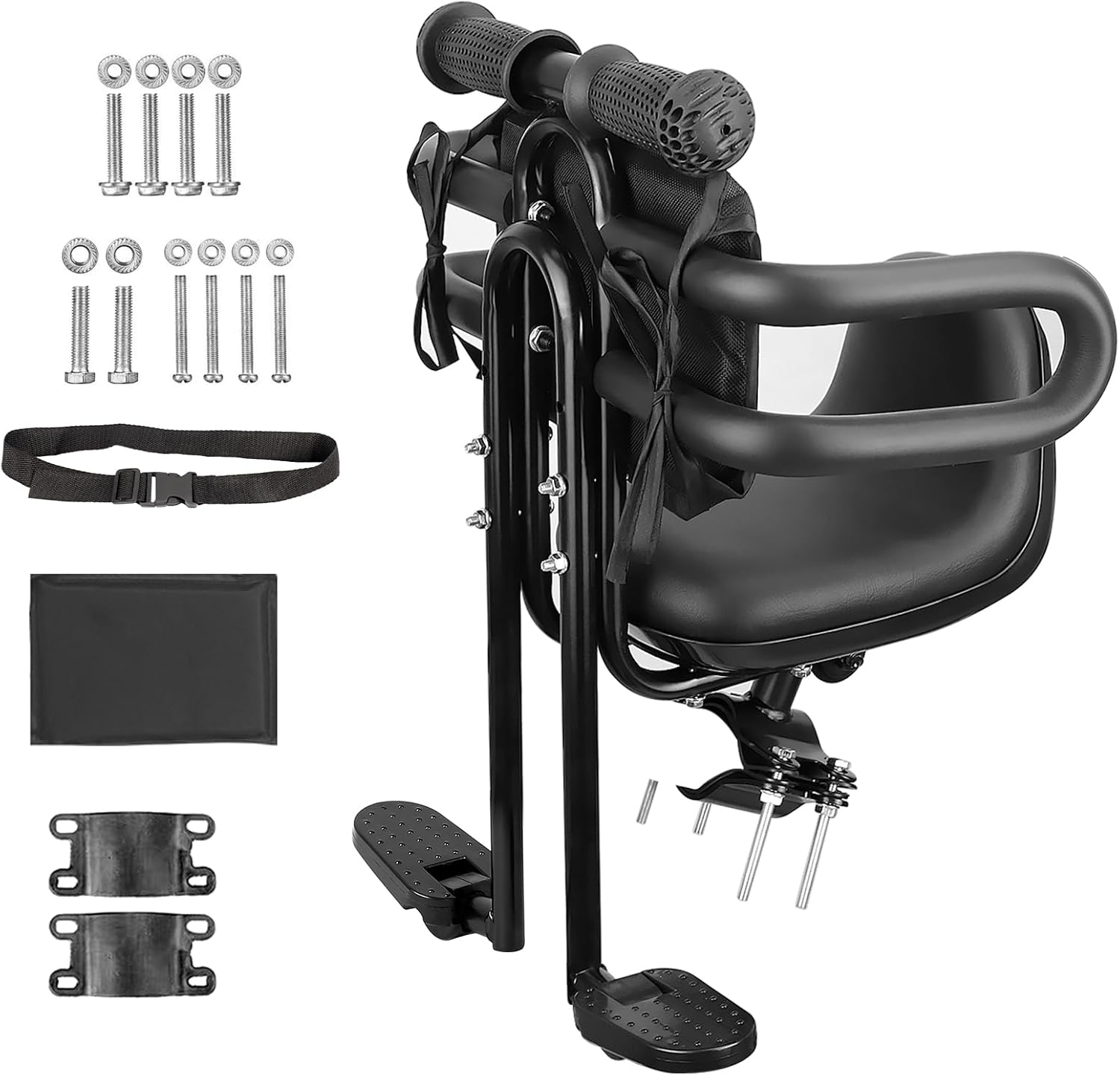 MEGHNA Bike Child Seat Front Mounted for Adult Bike Comfortable Baby Bike Seat with Backrest Adjustable Height and Position Bicycle Child Seat with Foot Pedals for Baby Toddler