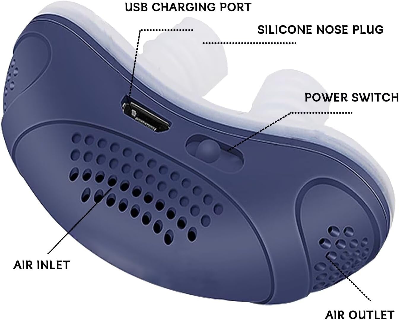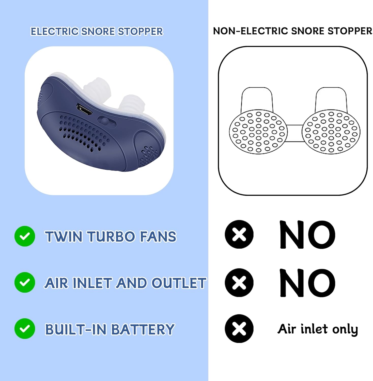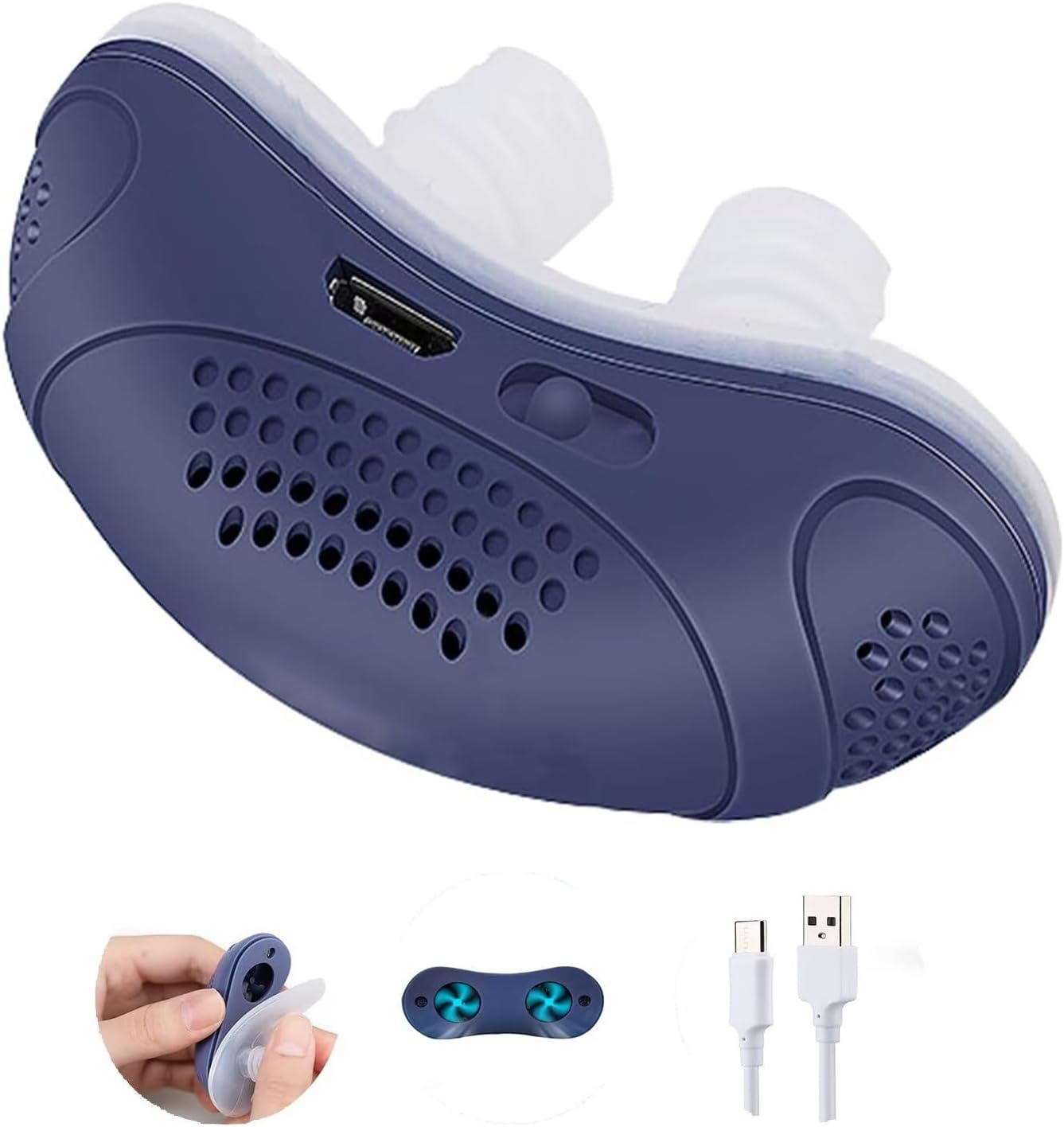 Solve Snoring: Anti-Snoring Devices - Effective Snoring Prevention with Twin Turbine, Electric Adjustable, and Breathable Features. Adjustable Wind Speed Turbine Fan Improves Airflow in Your Nose, Allowing You to Breathe Freely While Sleeping and Thus Solving the Problem of Snoring.