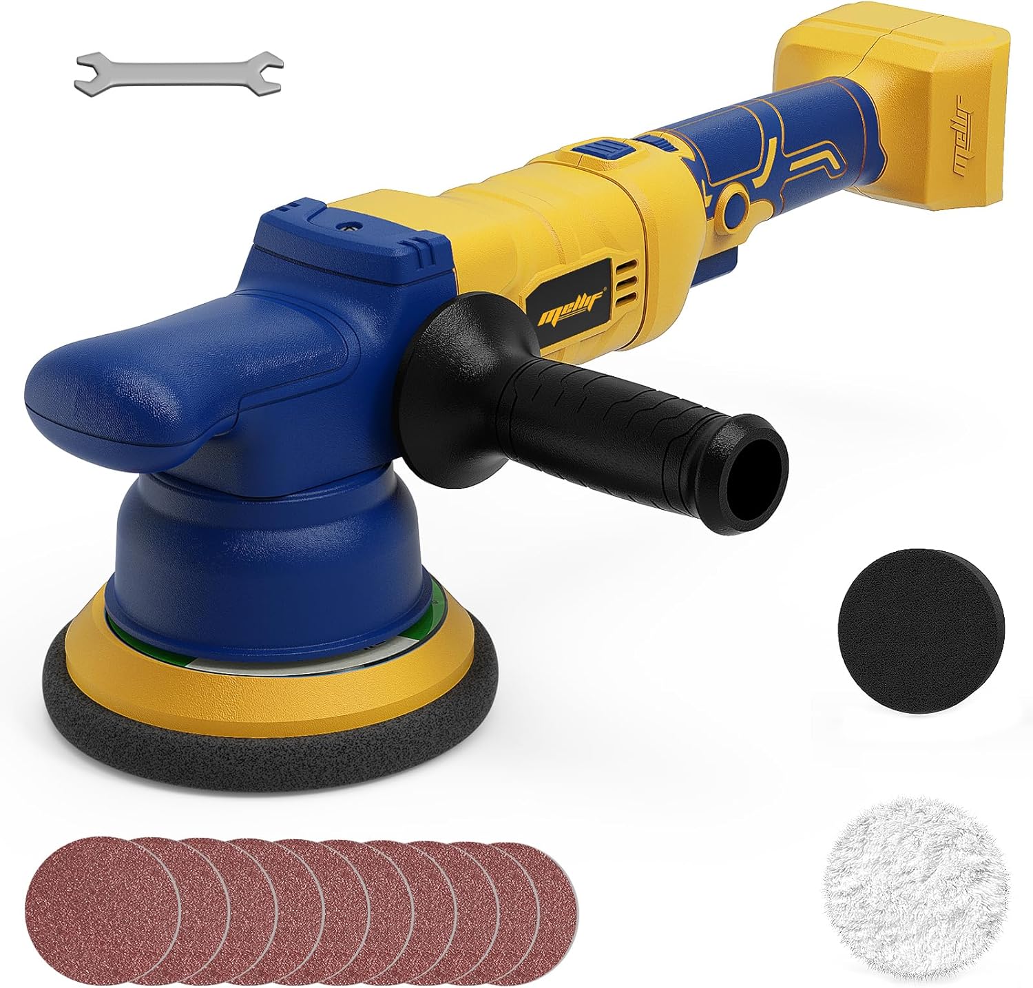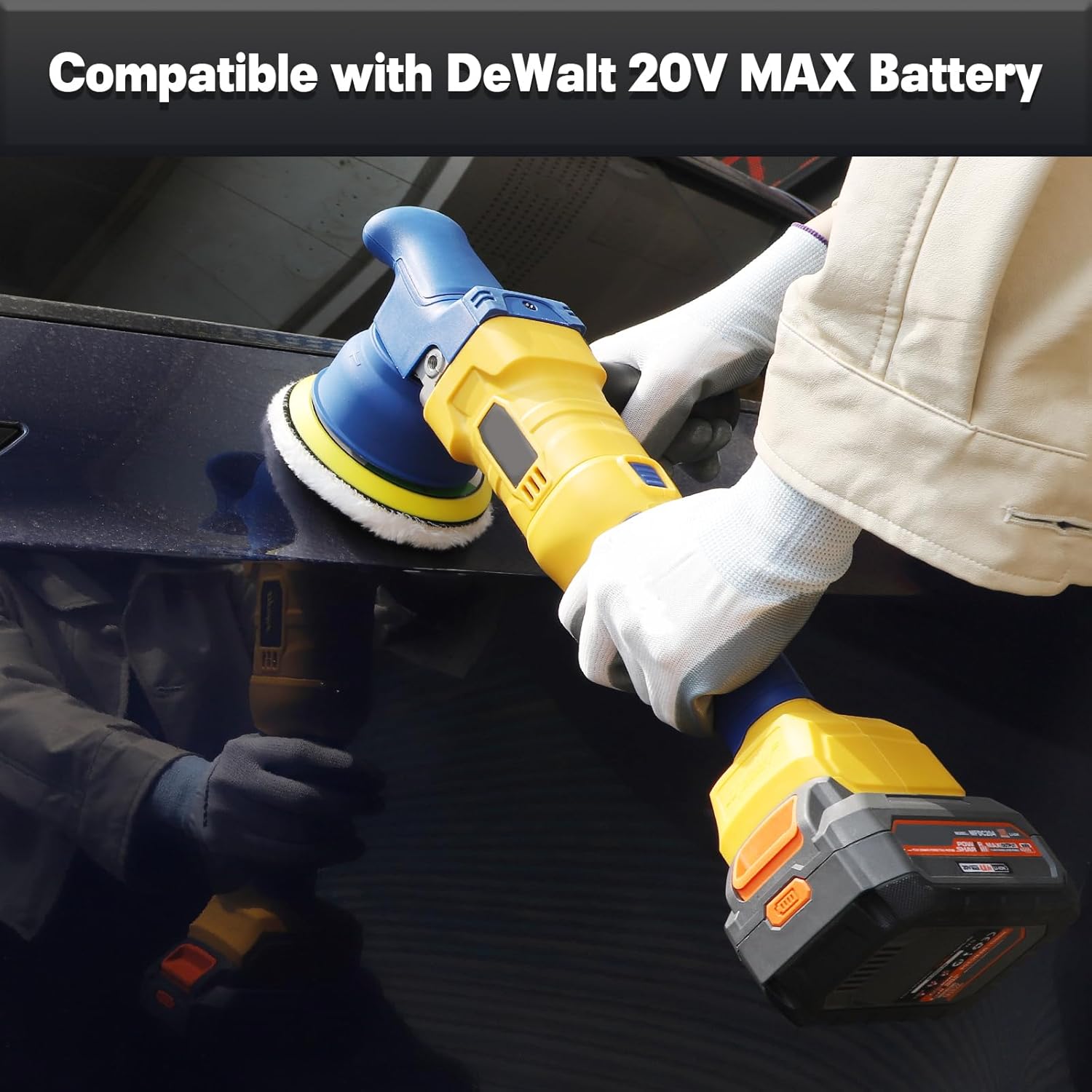 MaxMore 5" Car Buffer Polisher Compatible with DeWalt 20V MAX Battery, 6 Variable Speed Cordless Orbital Random Waxer, Dual Action, 5,000RPM Brushless, Detachable Handle for Polishing, Detailing