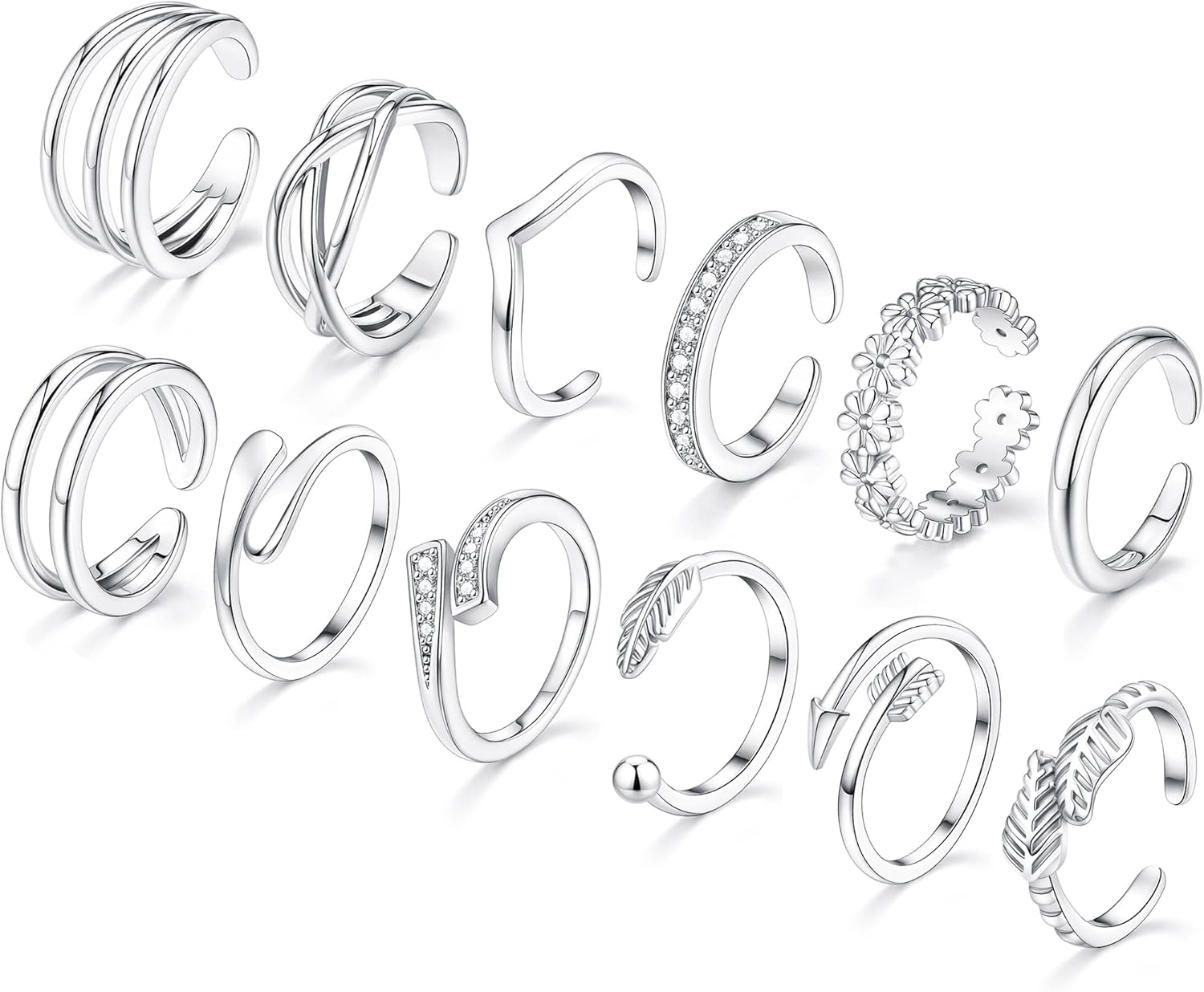 WAINIS 12Pcs Toe Rings for Women Non Tarnish Toe Ring Set Simple Cute Open Adjustable Band Toe Ring Hawaiian Beach Summer Foot