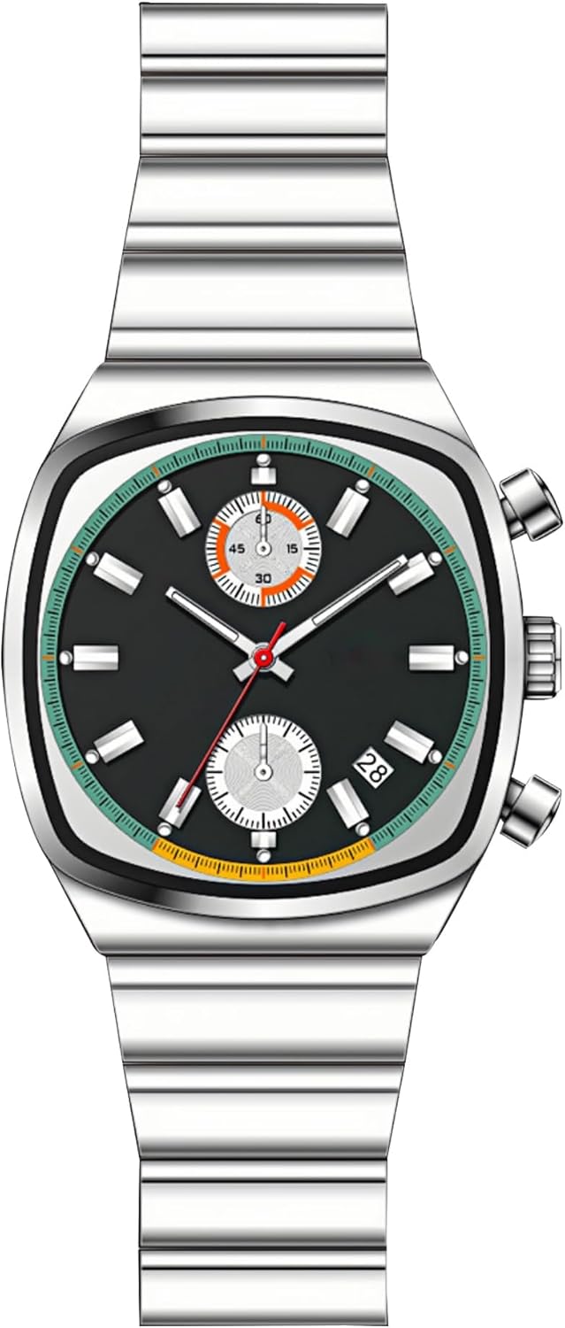 Fashion Business Square Mens Watches Luminous Waterproof Quartz Watch with Calendar & Chronograph - Stylish Gold & Silver Wristwatch Stainless Steel Band