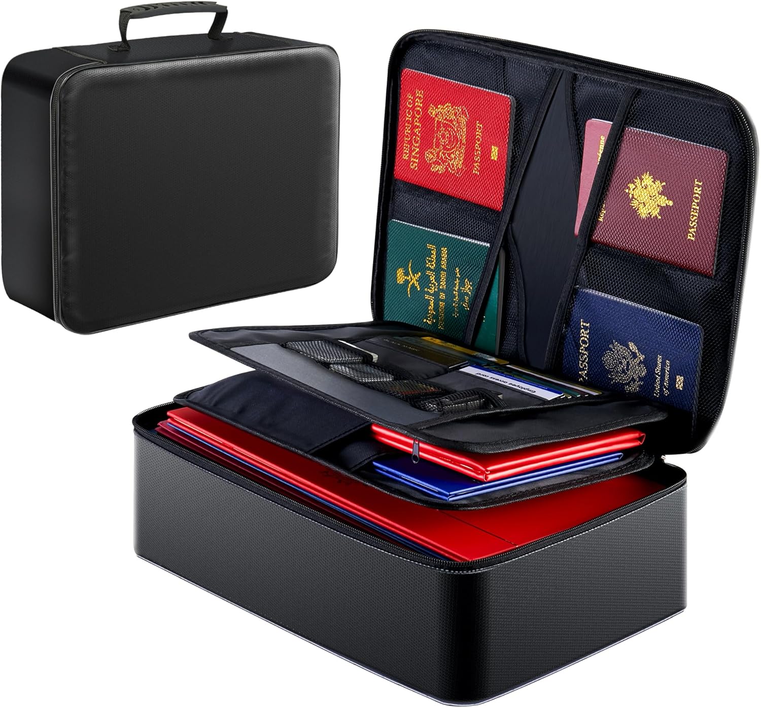 【Soft Box】 Large-capacity(15.1"x11.2"x4.3"),Compared with other bags,our fireproof file organizer adopts a multi-layer design that can meet all your storage needs. These include 8 passport mesh bags,16 card slots, 4 U Disk pockets, 7 folder layers and one main pocket with a large space. It can store your important documents,files,money,passport,U Disk,cards,laptop,certificates in a safe and orderly way