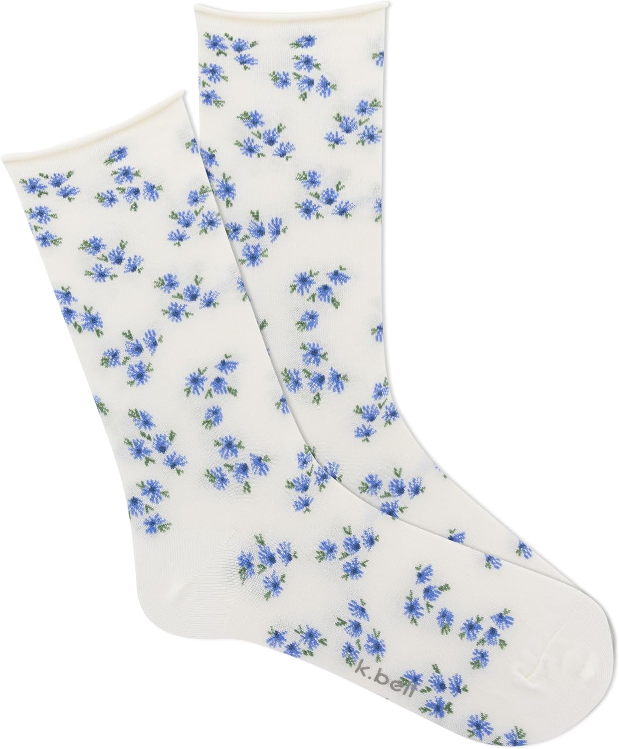 K.Bell Women's Ditsy Spring Roll Top Crew, Sand, Women's Shoe Size: 4-10