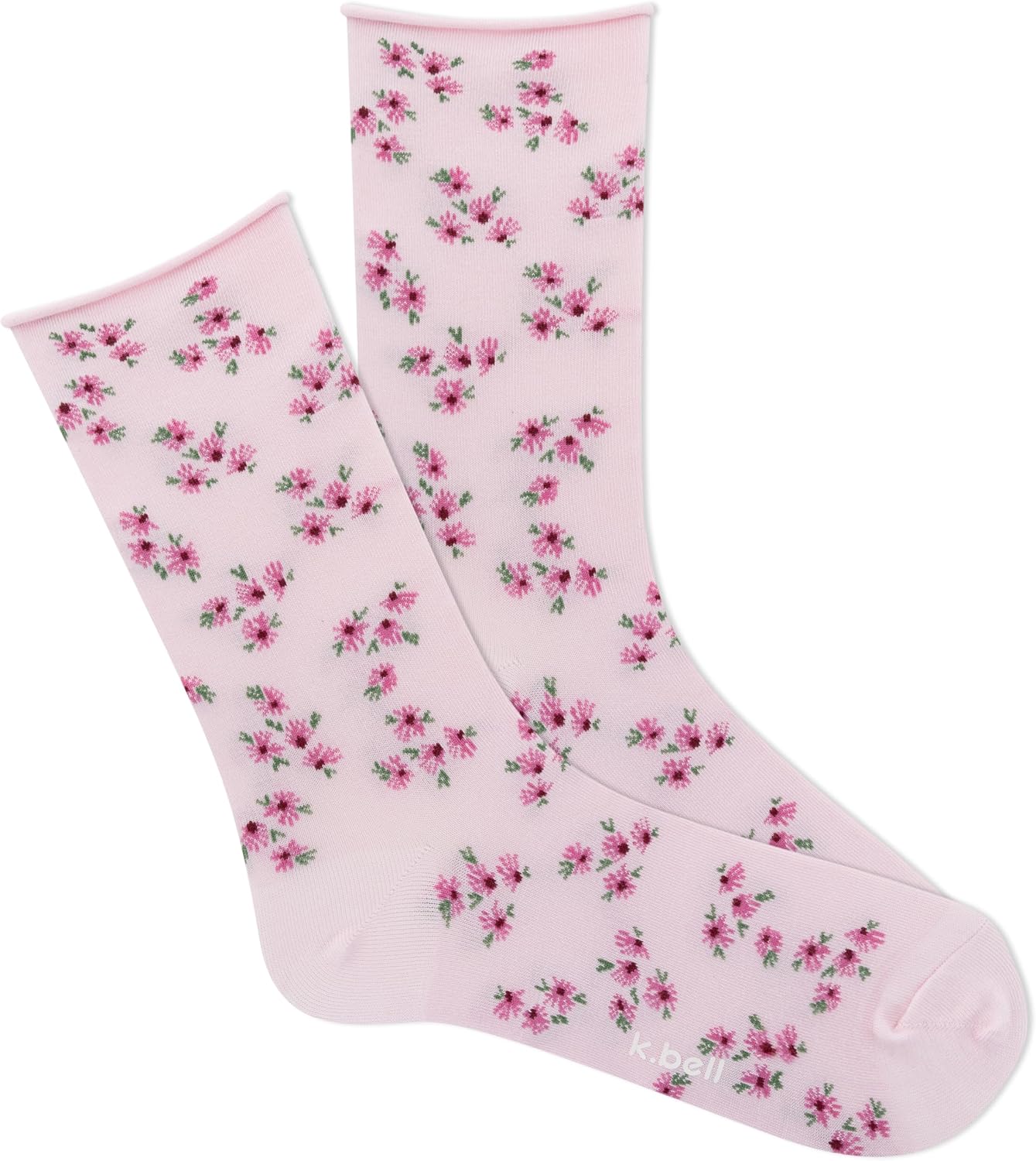 K.Bell Women's Ditsy Spring Roll Top Crew, Pink, Women's Shoe Size: 4-10