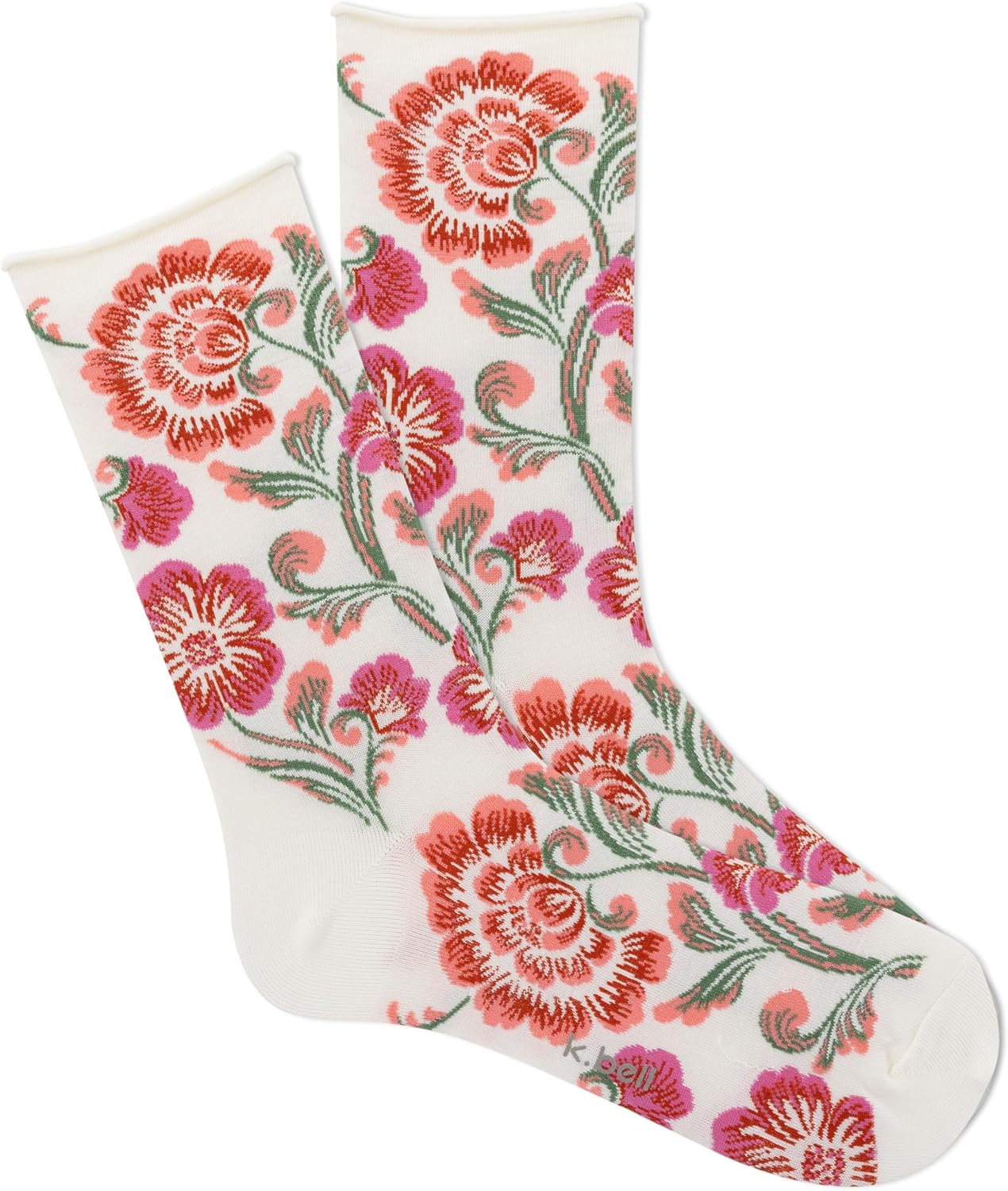 K.Bell Women's Romantic Floral Roll Top Crew, Sand, Women's Shoe Size: 4-10