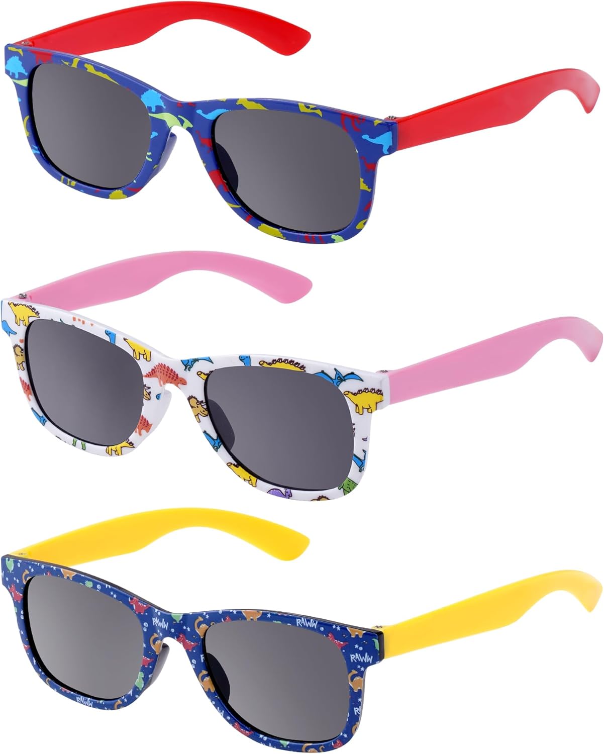 obmwang 3 Pack Kids Sunglasses Stylish Cute Dinosaur Glasses for Toddler Girls Boys Outdoor Beach Eyewear