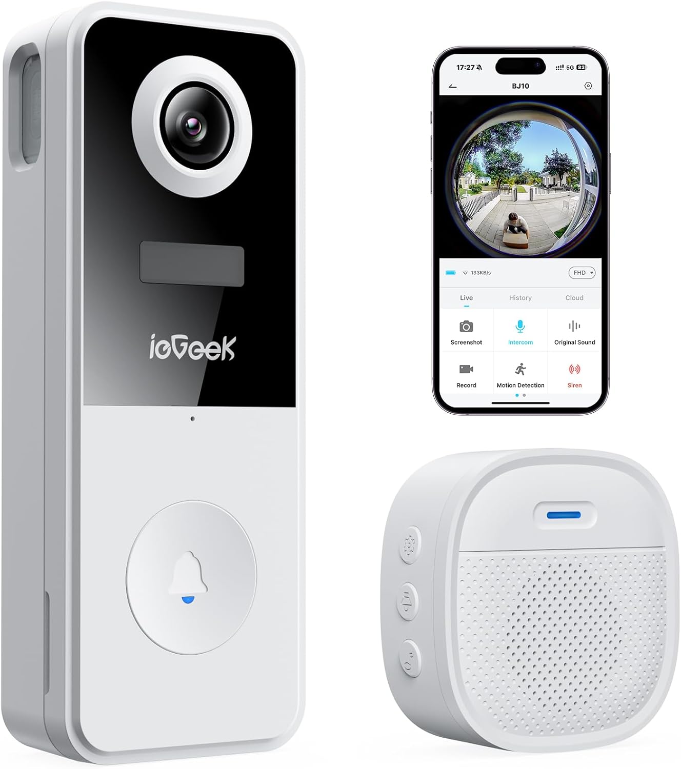 ieGeek Doorbell Camera Wireless No Subscription, 3MP Video Doorbell with Chime, 180° Head to Toe View, 2-Way Talk Voice Changer, AI Motion Detection Night Vision, Only 2.4GHz WiFi, Works with Alexa