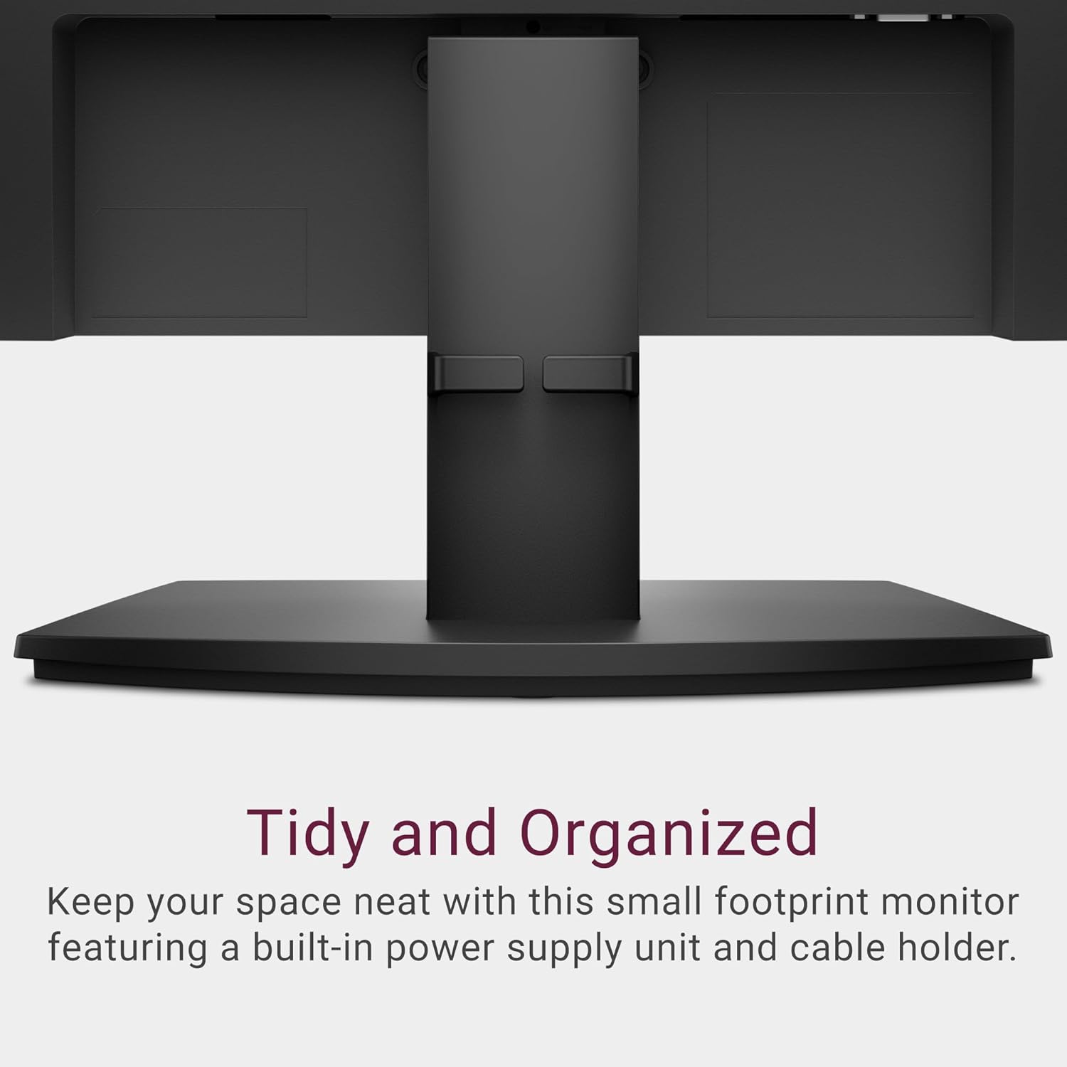 Tidy and organized: Keep your space neat with this small footprint monitor featuring a built-in power supply unit and cable holder.