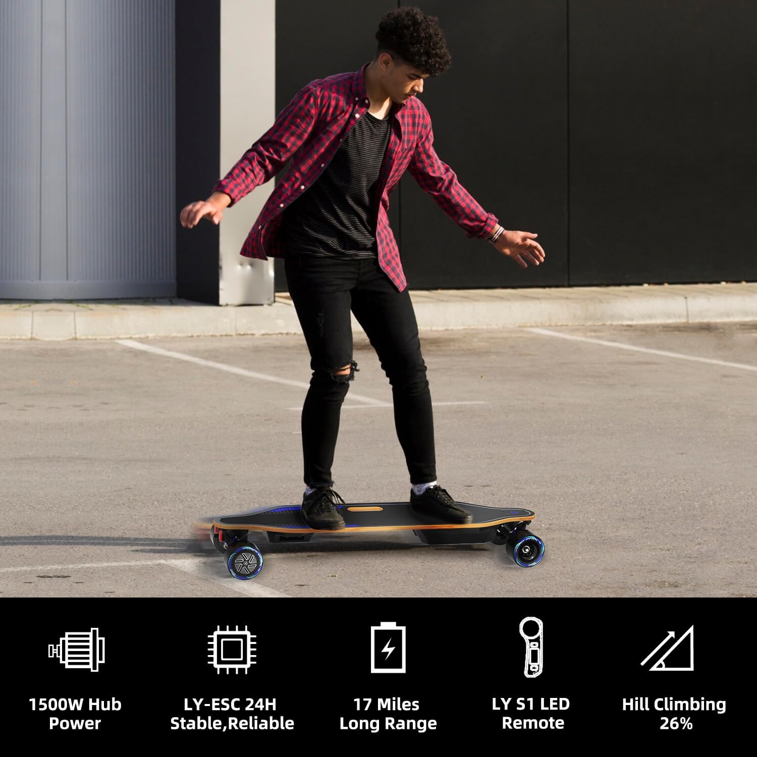 A1 Electric Skateboard with Remote, Rang Up to 17 Miles/24, 8 Ply Canadian Maple, Smooth Breaking, Suitable for Younger Beginners