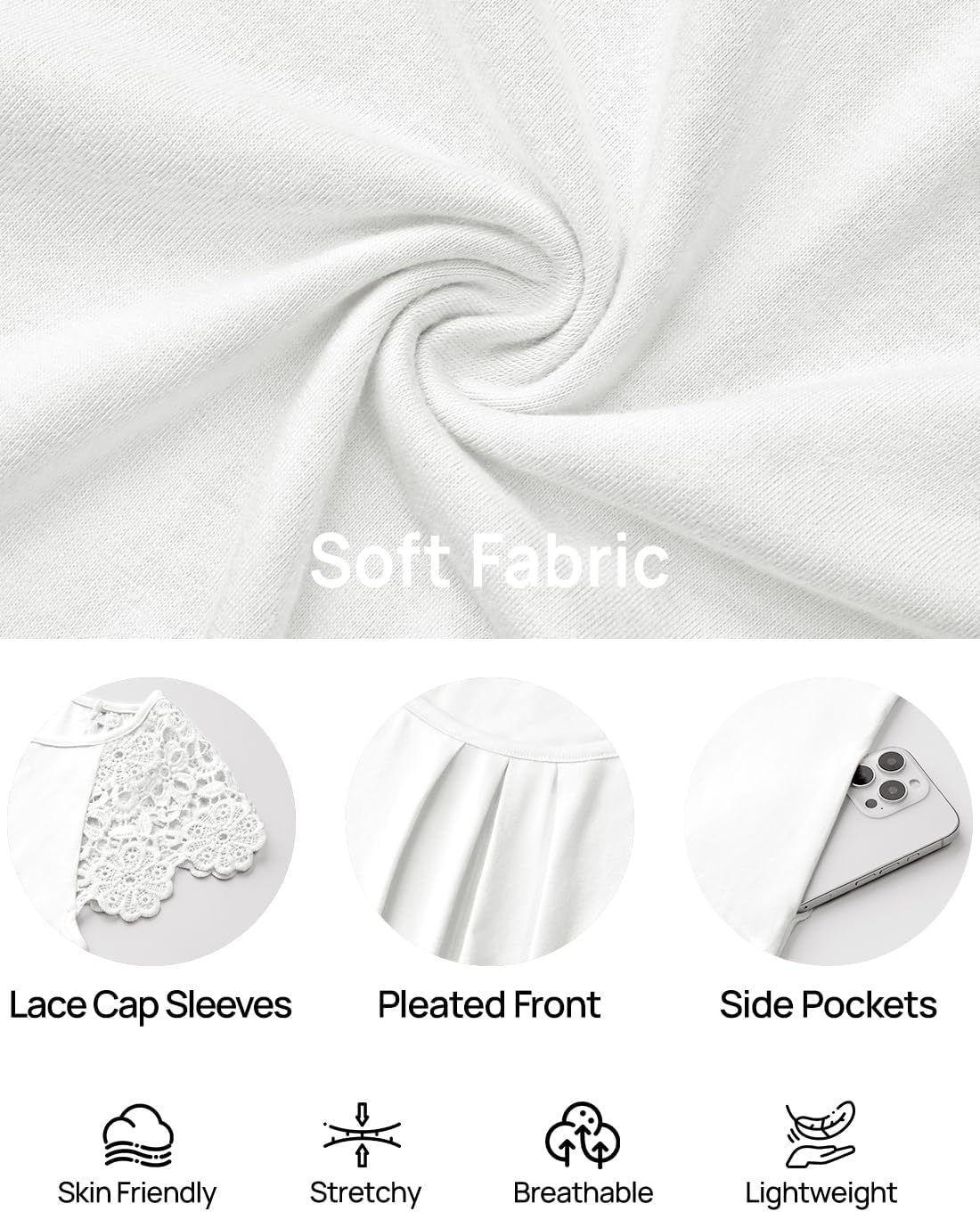MEROKEETY Women's Casual Summer T Shirt Dress Beach Vacation Lace Sleeveless Flowy Pleated Mini Sundress