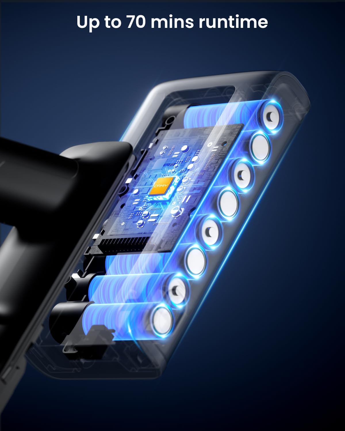 [Max 70 Mins Running Time] Equipped with 8*2800mAh rechargeable battery pack, breaking the limitations of battery life and providing up to 70 minutes. X100 stick vacuum can complete the whole house cleaning of large households in one go, from living room to bedroom, study room to kitchen, without frequent charging, and the cleaning process is completed in one go!