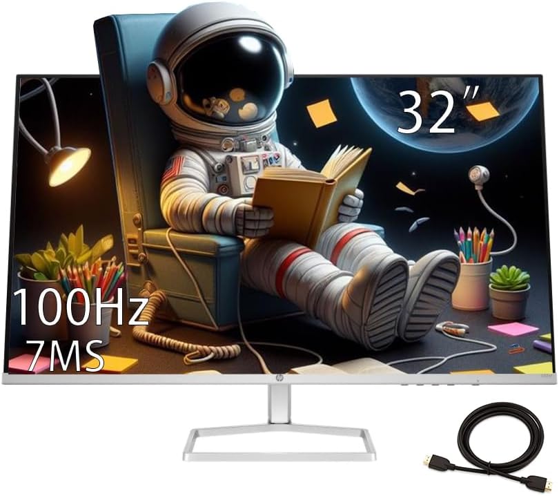 HP Monitor 32" VA Panel, FHD(1920X1080), Anti-Glare Display, 100Hz Refresh Rate, 7 MS Response Time, 2 x HDMI 1.4, 1 x VGA, 16:9 Aspect Ratio, Silver, with HDMI Cable