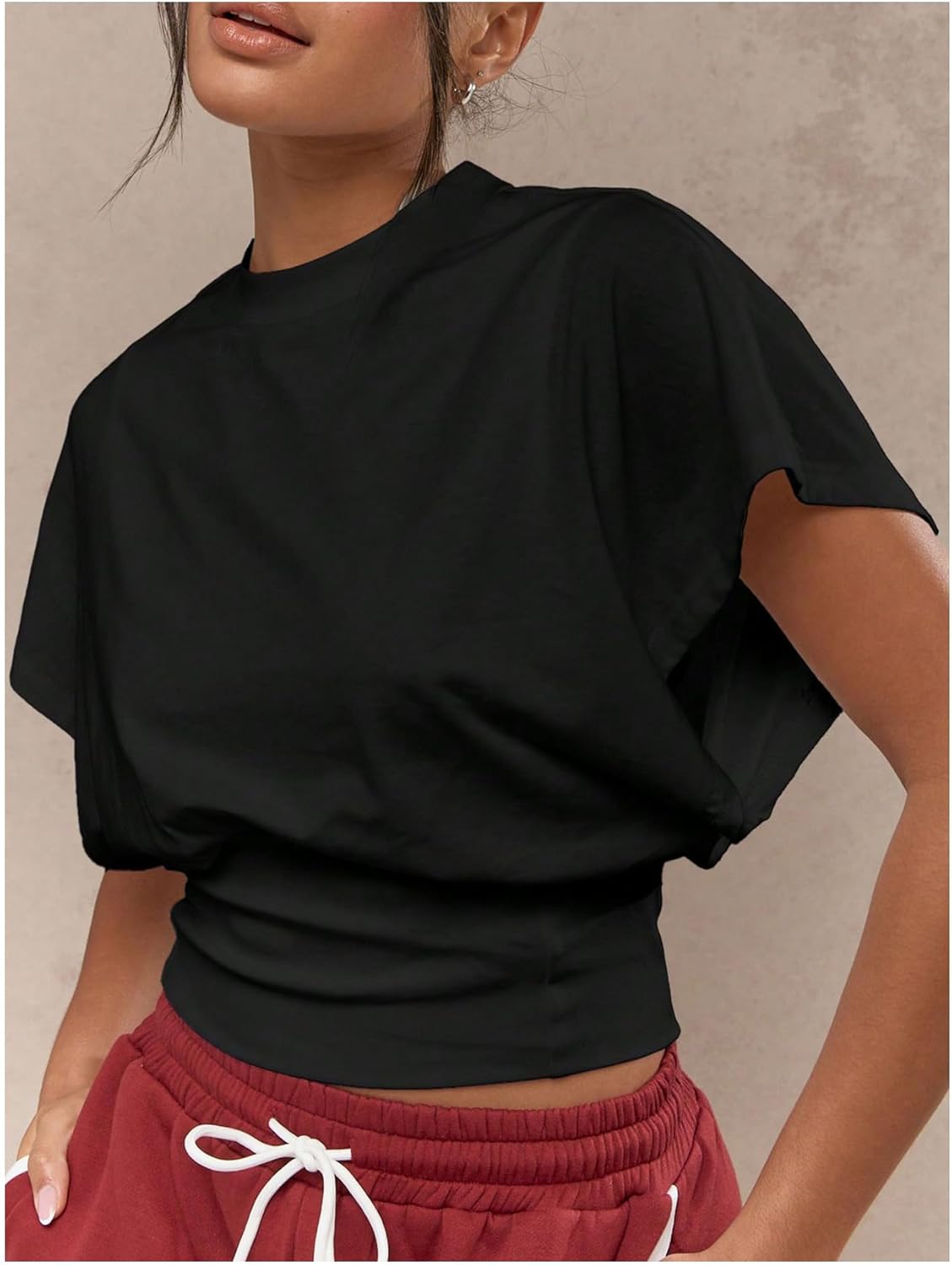 SHENHE Women's Cap Sleeve Dolman T Shirt Crew Neck Cinched Waist Loose Summer Crop Top