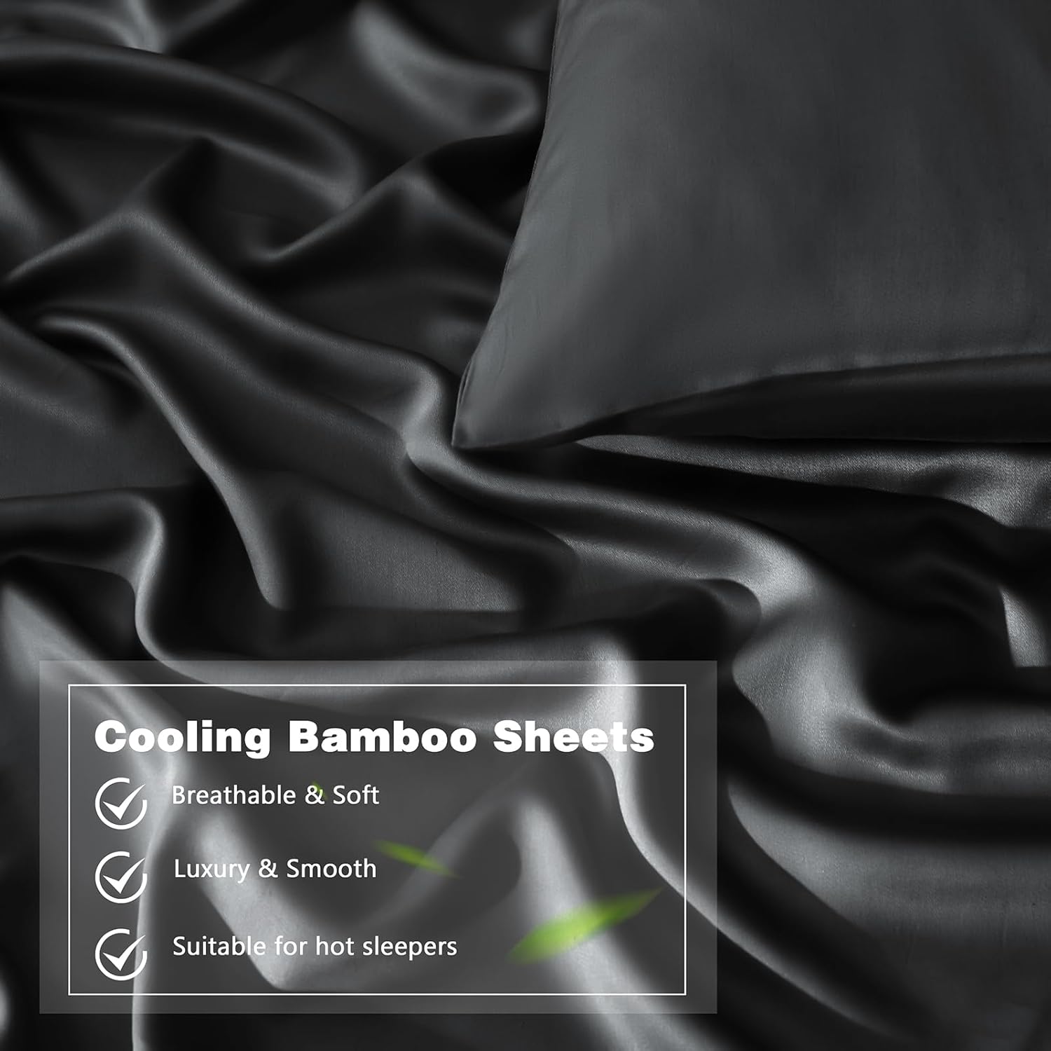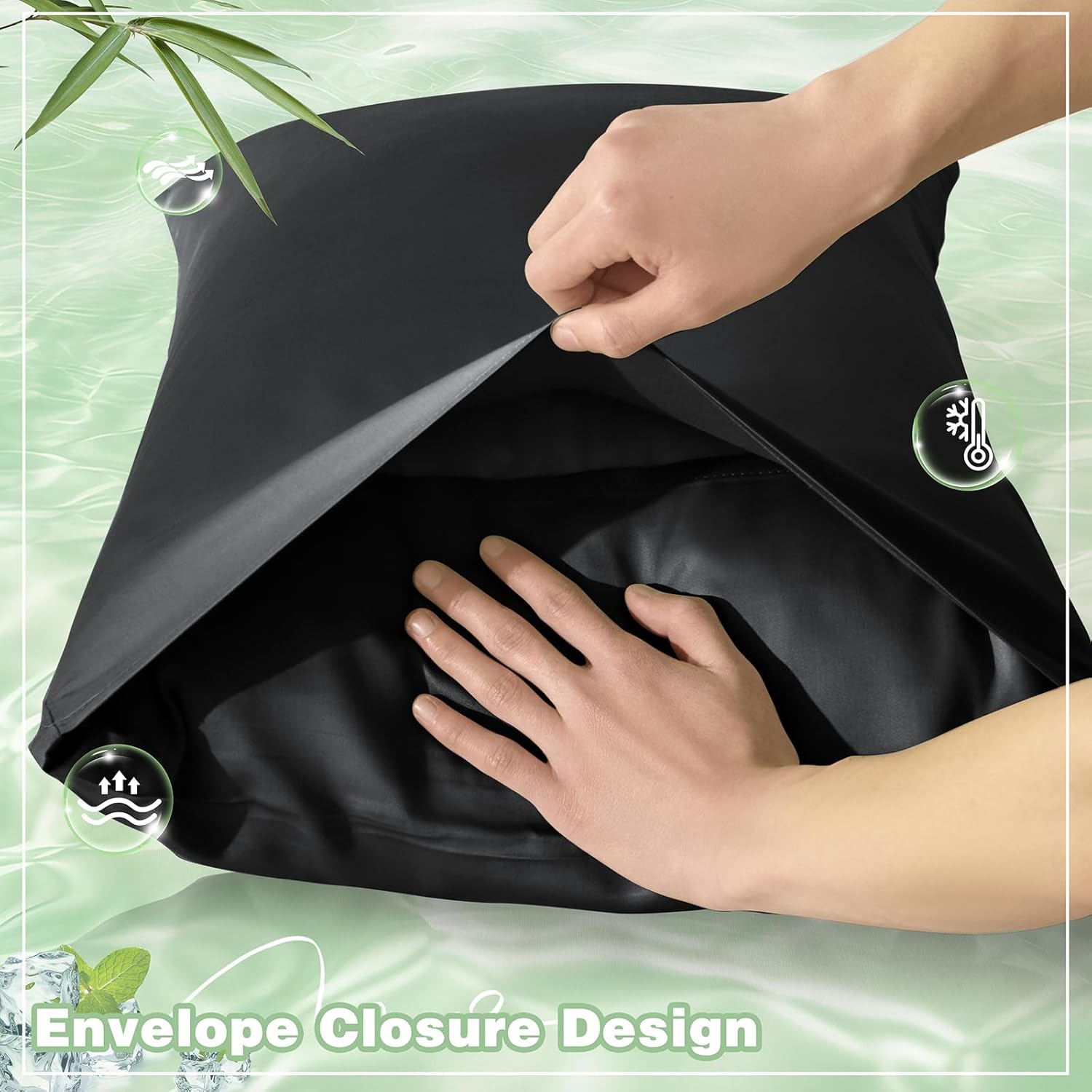 Homiest Cooling Pillow Cases Queen Size Set of 2, 100% Rayon Derived from Bamboo Pillowcase for Hot Sleepers, Breathable & Silky Soft Pillow Covers with Envelope Closure (Black, 20x30 Inch)
