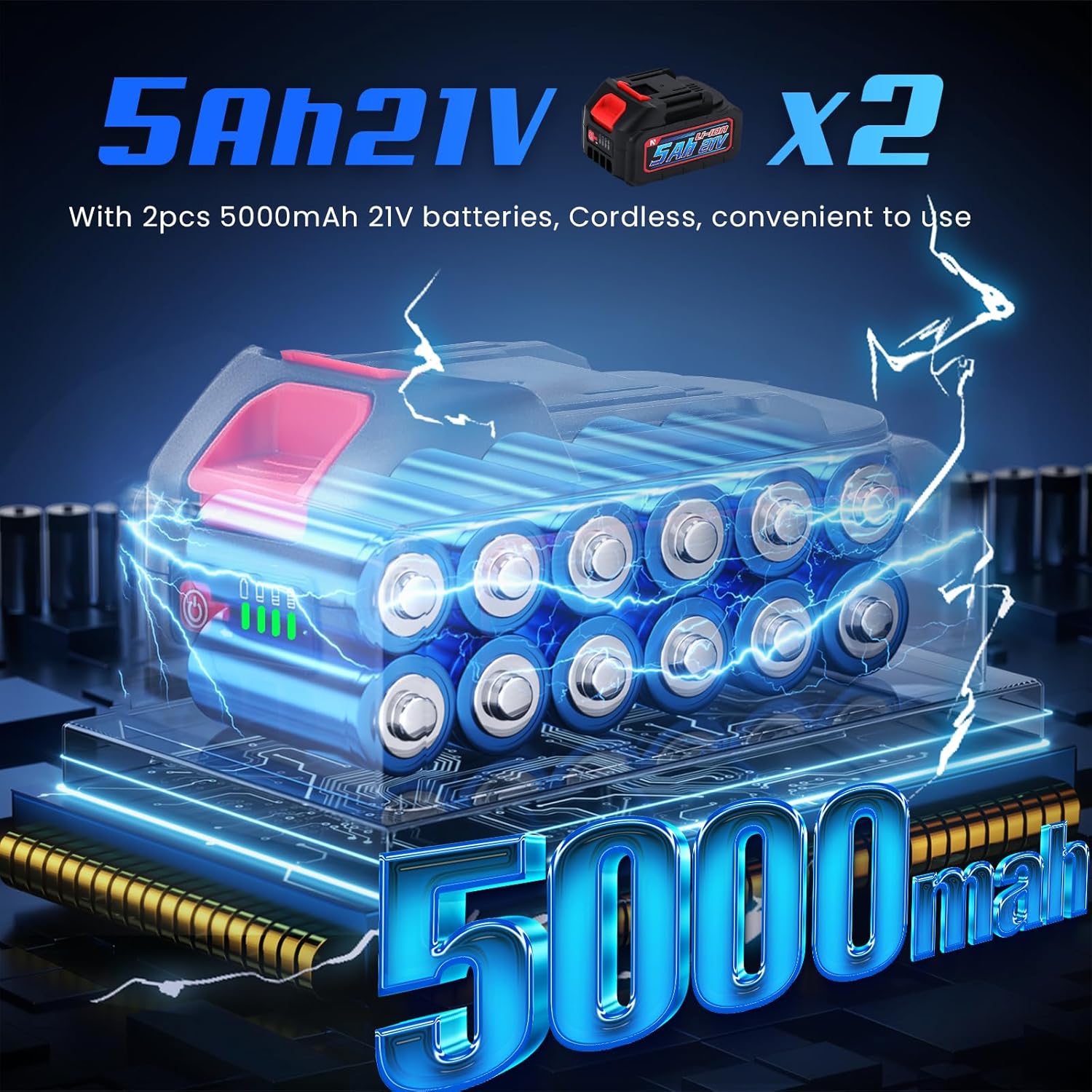 [Powerful Crimping Tool]---This advanced electric hydraulic crimping tool features an enhanced crimping force of 6 tons and a stroke length of up to 33mm. Equipped with 13 dies, it effortlessly handles various sizes of cable lugs. Each tool comes with 2pcs 5000mAh rechargeable batteries for convenient use, allowing you to swap batteries as needed.