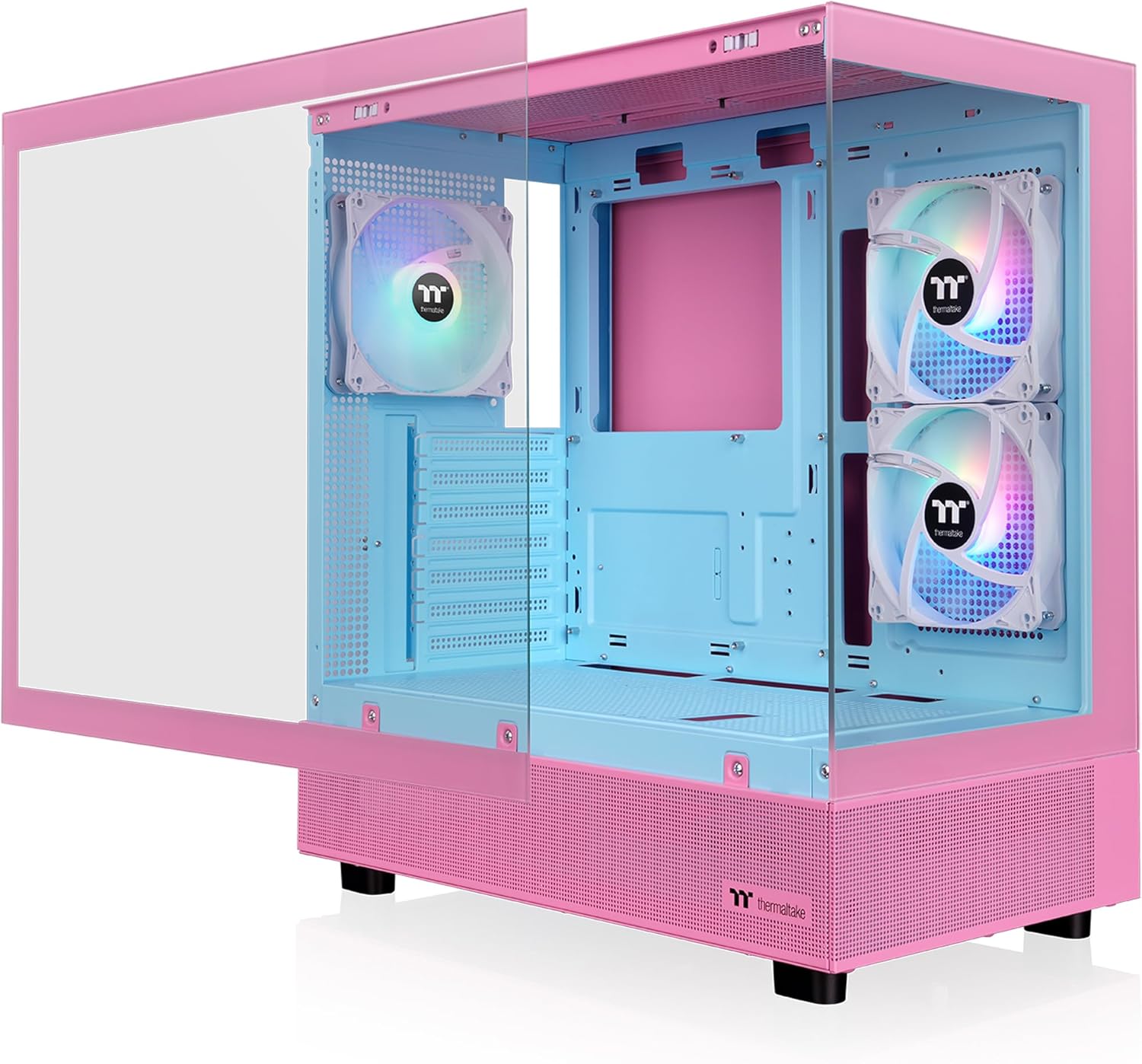 Thermaltake View 270 Plus TG ARGB Mid Tower Chassis; 3x120mm ARGB Lite Fans Included; 360mm Radiator Support; 420mm GPU Clearance; 180mm Air Cooler Max Height; Bubble Pink; CA-1Y7-00MAWN-00