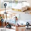 3-in-1 Standing Fan -- This fan for bedroom supports three levels of height adjustment (19.7 inches, 29.9 inches, 41.3 inches), which are suitable for different usage scenarios. The highest level, 41.3 inches, is suitable for high air supply scenarios such as kitchen countertops; The mid-range of 29.9 inches matches the height of a regular desktop, meeting the needs of sitting posture; Minimum 19.7 inches can be used in kid's and pet activity areas,or ground close range air supply