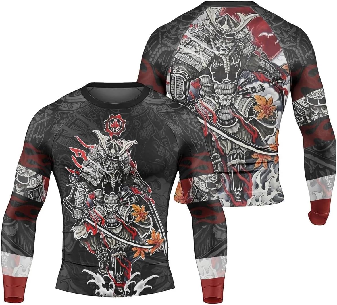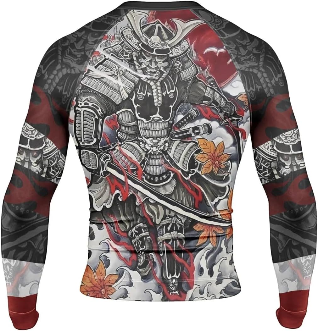 Samurai Warrior Men's Rash Guard Shirts Long Sleeve, Baselayer Compression Shirt for Jiu Jitsu MMA