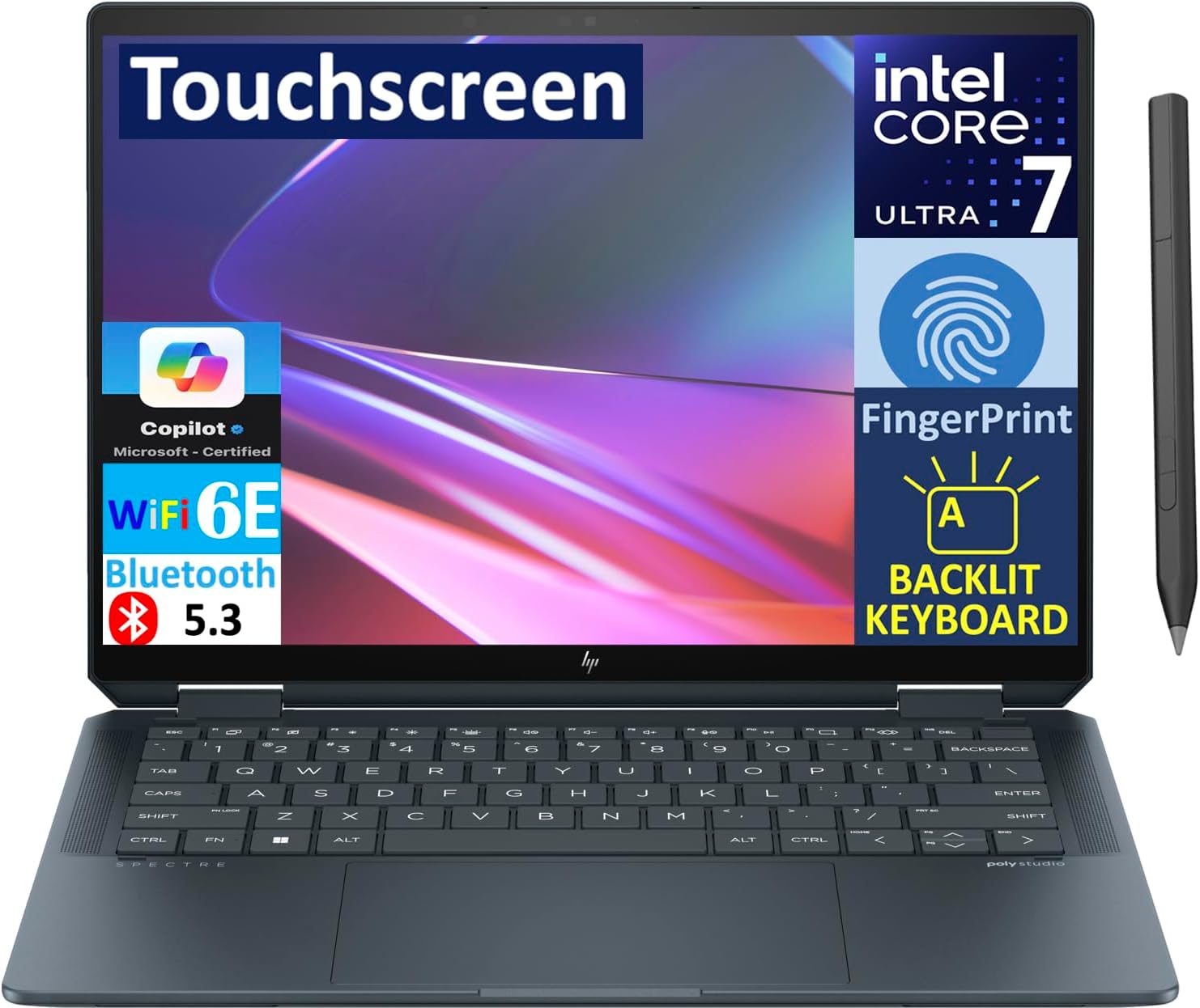 HP Spectre x360 AI Powered 2-in-1 Laptop 14.0" Touchscreen OLED 2.8K Display (Intel Ultra 7-155H, 32GB LPDDR5X, 2TB PCIe SSD, Active Pen, Backlit KB, Fingerprint, Win 11 Pro) (Renewed)