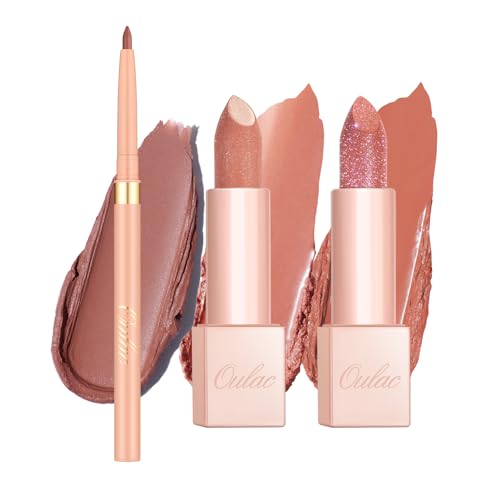 Oulac Lipstick & Lipliner Set 3PCS High Impact Lipcolor with Moisturizing Formula, Vegan Beauty, Full-Coverage Lip Color, Gift Lipstick for Women, LL03+PG07+PG11