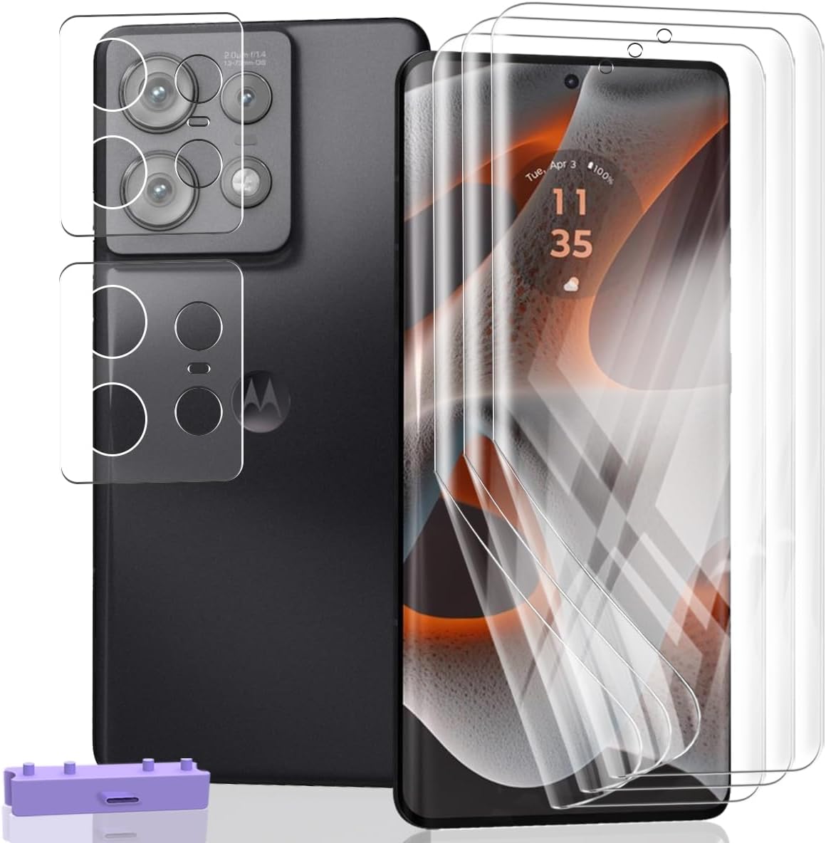 Only Compatible with Motorola Edge 50 Pro. Include 3 Pack Flexible Soft TPU Screen Protector (Not Glass) with 2 Pack Tempered Glass Camera Lens Protector with Easy Installation , providing front and back dual protection for the phone. Please confirm the model of your device first before you purchase it