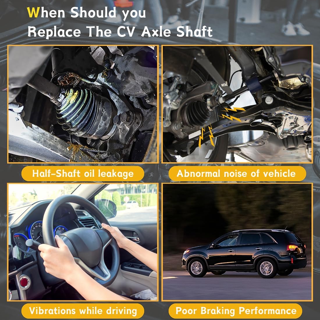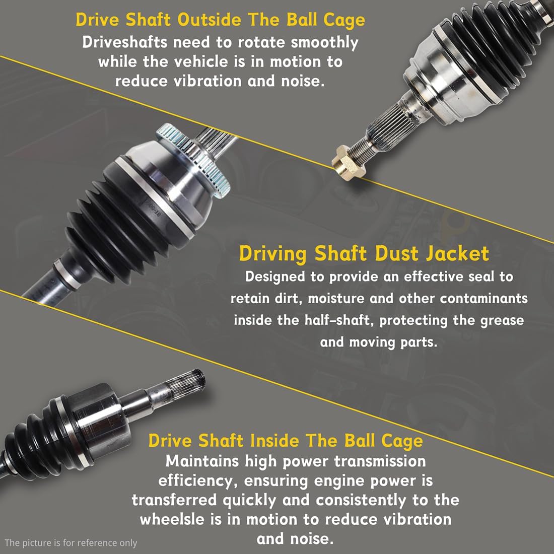 Direct Fit Replacement: Our front CV axle drive shaft is engineered to absorb vibration and noise effectively. After installing this product, you may notice significant improvements in several areas: ① Eliminate leaking grease from the CV joints; ② Reducing or eliminating bothersome noises such as clunks and clicks; ③ Minimizing uneven tire wear caused by unstable power transfer or misaligned components; ④ Eliminating vibrations while driving