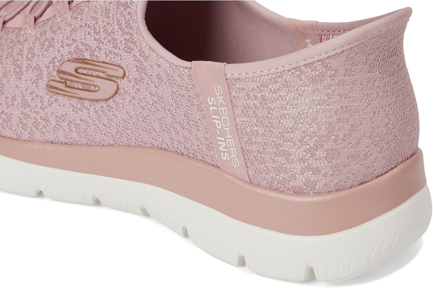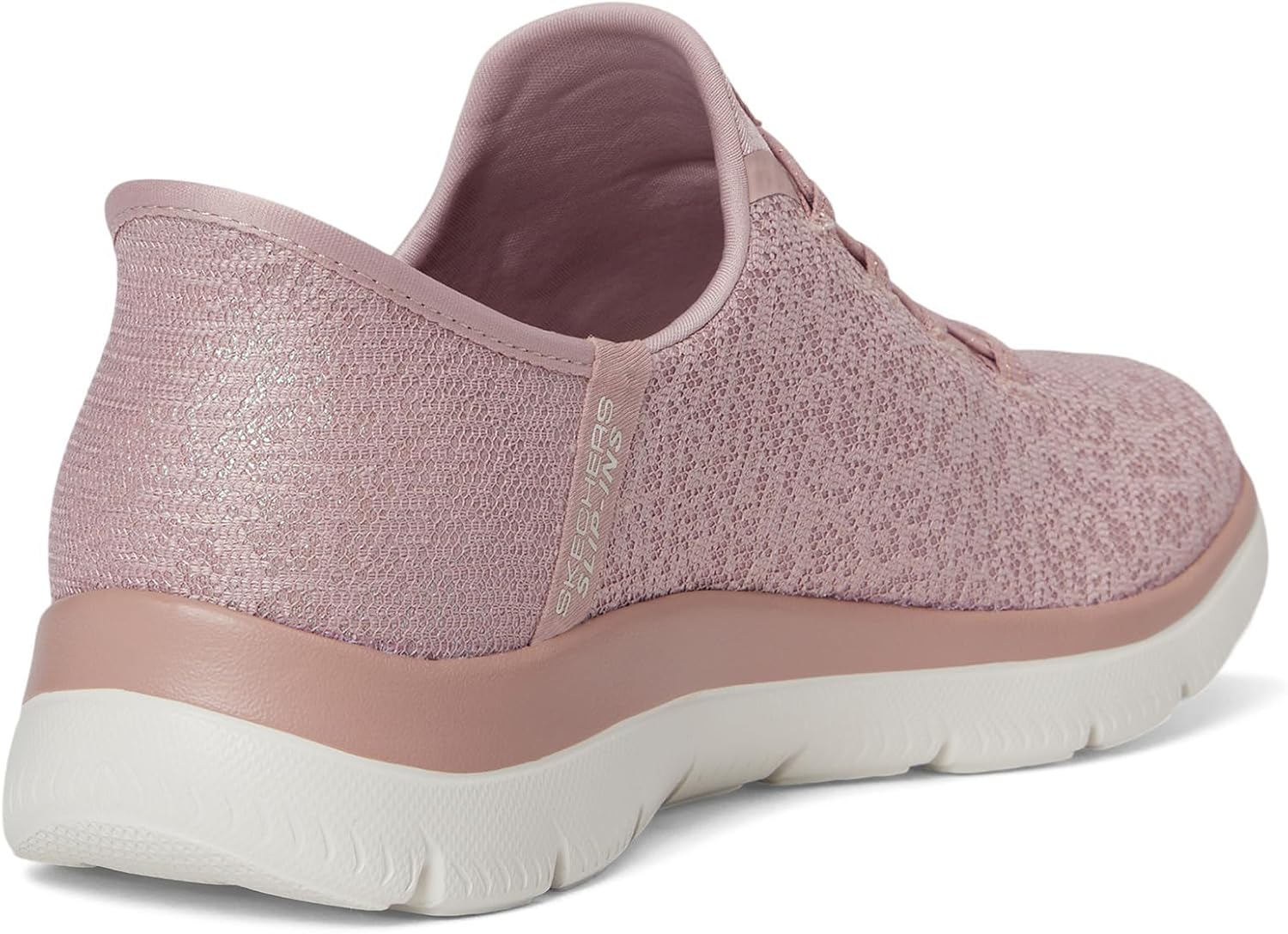 Add some shimmer to every step wearing Skechers Slip-ins®: Summits - Lunar Glow. Designed with our exclusive Heel Pillow™, this vegan slip-on features an iridescent mesh upper with fixed stretch laces and a cushioned Skechers Air-Cooled Memory Foam® comfort insole.