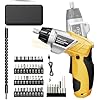 Electric Screwdriver Cordless Set, 3.6V Power Screwdriver Rechargeable with Light, Yellow Screw Gun with Pivoting Handle and Drill, 49 Pcs Accessories, 6+1 Torque Setting, 2000 mAh Battery