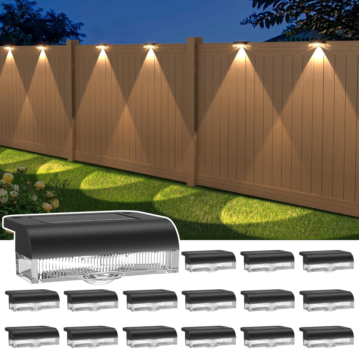 Greluna Solar Fence Lights Outdoor 16 Pack, Solar Step LED Lights Waterproof for Outdoor Stairs, Fence, Yard, Patio, Pool and Pathway(Warm White)