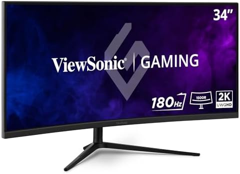 ViewSonic VX3418C-2K 34 Inch UltraWide QHD 1440p Curved Gaming Monitor with 180Hz, 1ms, 21:9, Advanced Ergonomics, FreeSync Premium, HDR10, HDMI, and DisplayPort Inputs