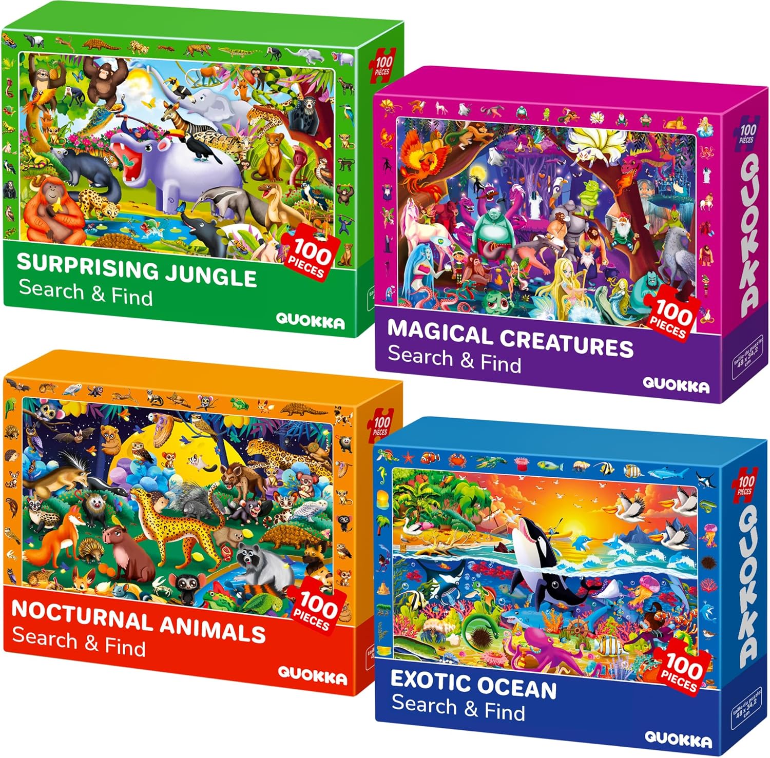QUOKKA 100 Piece Puzzles for Kids Ages 4-6 - 4 Jigsaw Puzzles for Kids Ages 6-8 - Search and Find Observational Nocturnal Life for Childrens 5-8 - Learning Educational Toys for Boys and Girls 8-10