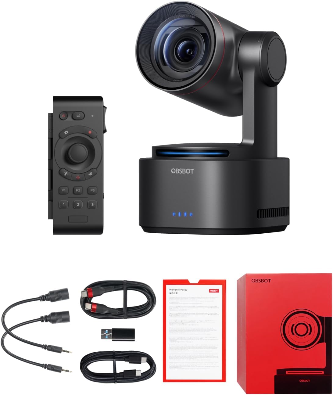 OBSBOT Tail 2 PTZR NDI Camera 4K@60FPS Bundle with Remote Contoller, Pro AI Tracking, 1/1.5" CMOS, 50MP, 5X Optical Zoom, 12X Hybrid Zoom, SDI/HDMI/IP/USB 3.0 Output, Live Production Camera