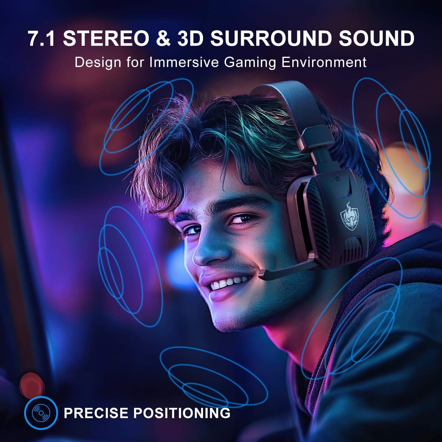 7.1 STEREO & 3D SURROUND SOUND -- Gaming headset is equipped with high-precision 40mm dynamic drivers and 7.1 surround sound, which delivers enhanced audio clarity and realistic 3D sound for an immersive gaming environment.