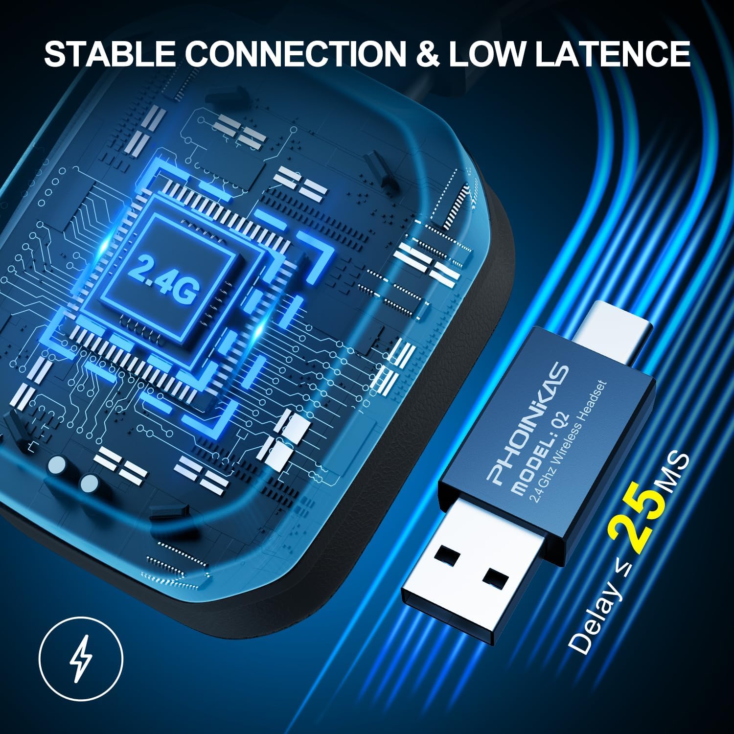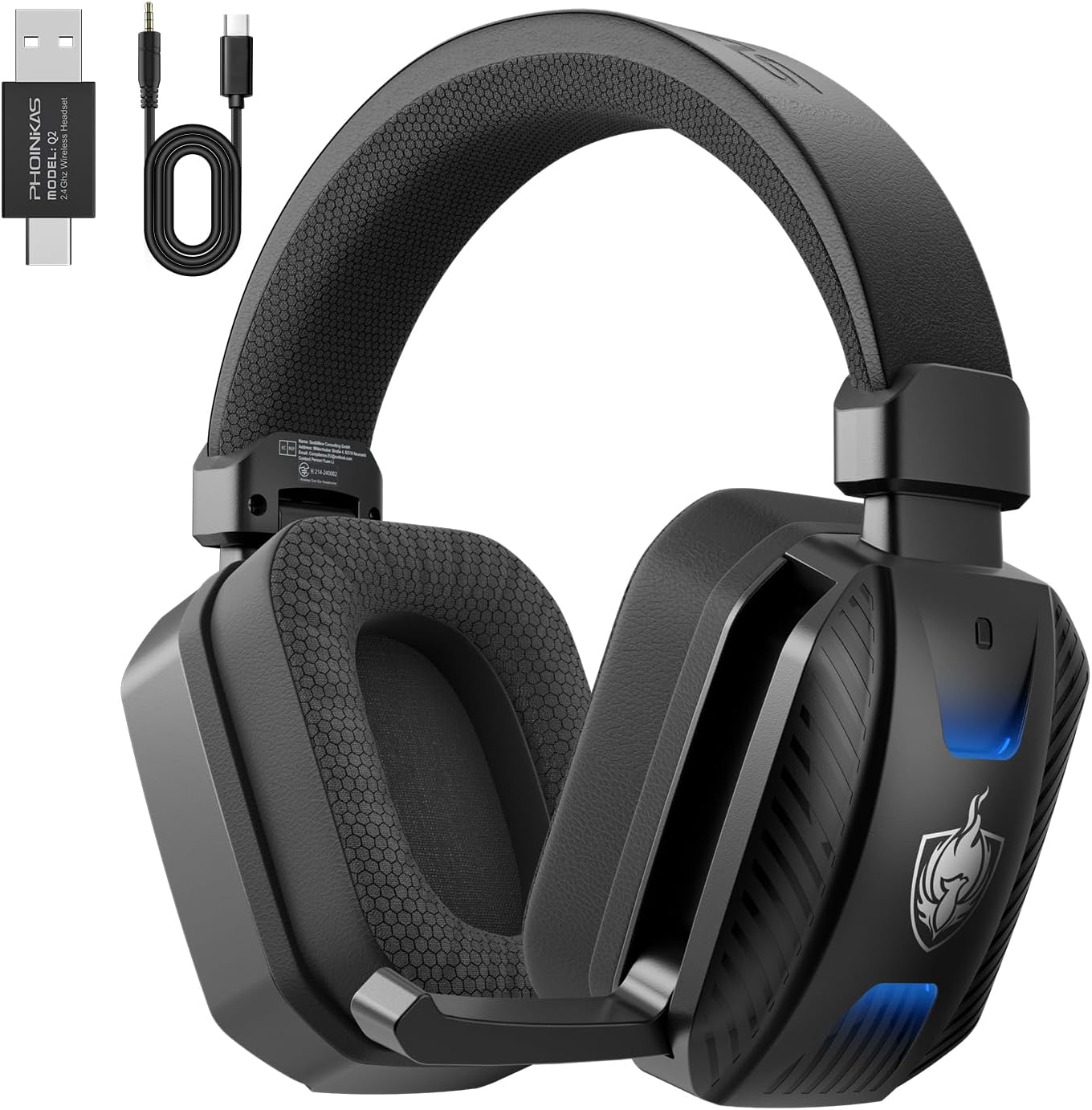 PHOINIKAS Wireless Gaming Headset for PS5, PS4, PC, Ultra Stable 2.4GHz USB & Type-C, Bluetooth 5.3 Gaming Headphones with Mic, 7.1 Stereo Sound, 30+Hr Battery Gamer Headsets for Switch, Xbox -Black