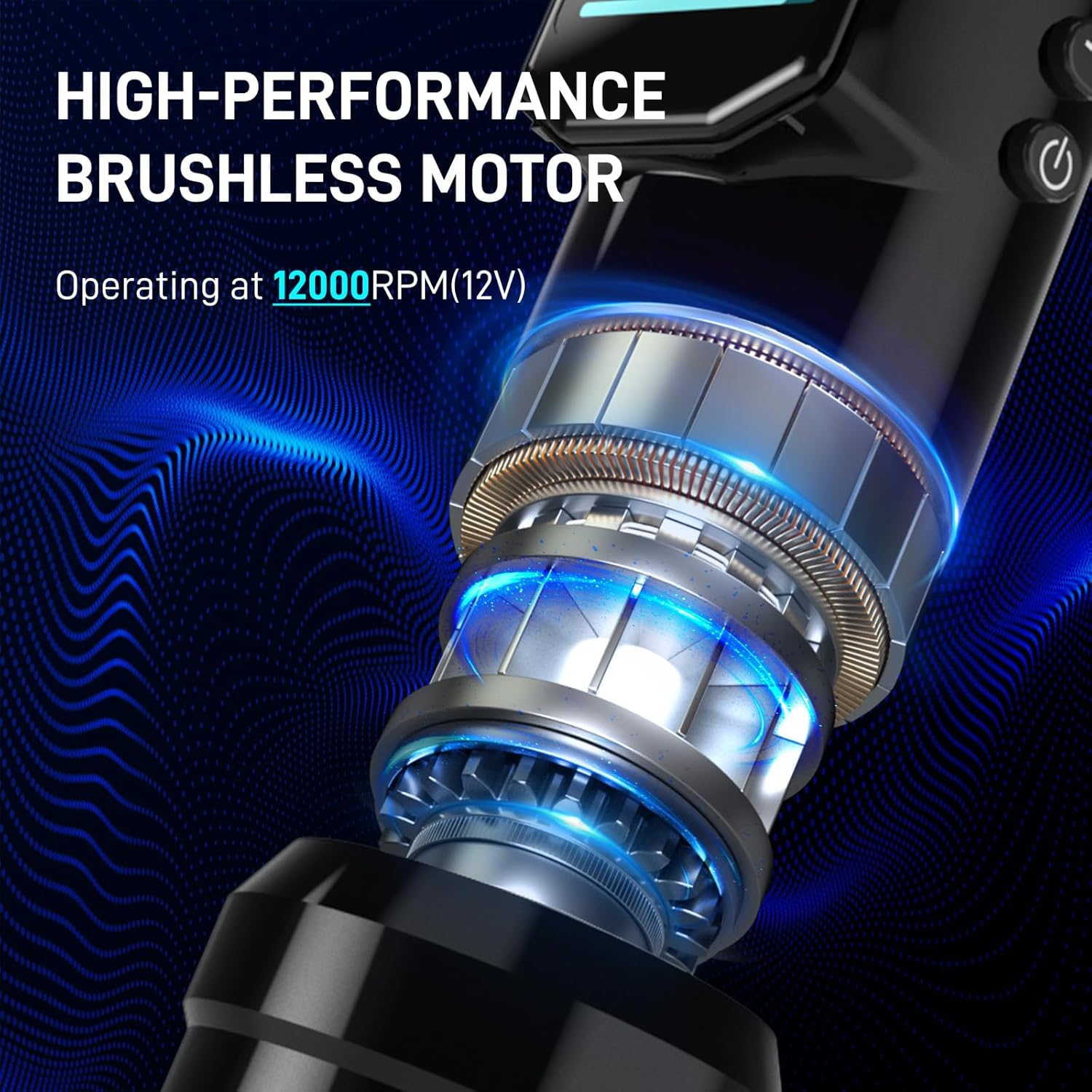 【Tattoo Machine Motor Power & 4.0mm Stroke Length】- This tattoo pen has a 1500mAh battery that can run for 6 hours and takes only 2 hours to fully charge. The motor speed can reach up to 12,000 RPM at 12V. If a large current fault occurs during motor operation, the motor will automatically stop, and a stall fault code will be displayed. The pen features a 4.0mm stroke, which doesn't require adjustment, but the needle depth can be adjusted. Additionally, it has a high-definition LED display that clearly shows the content on the screen