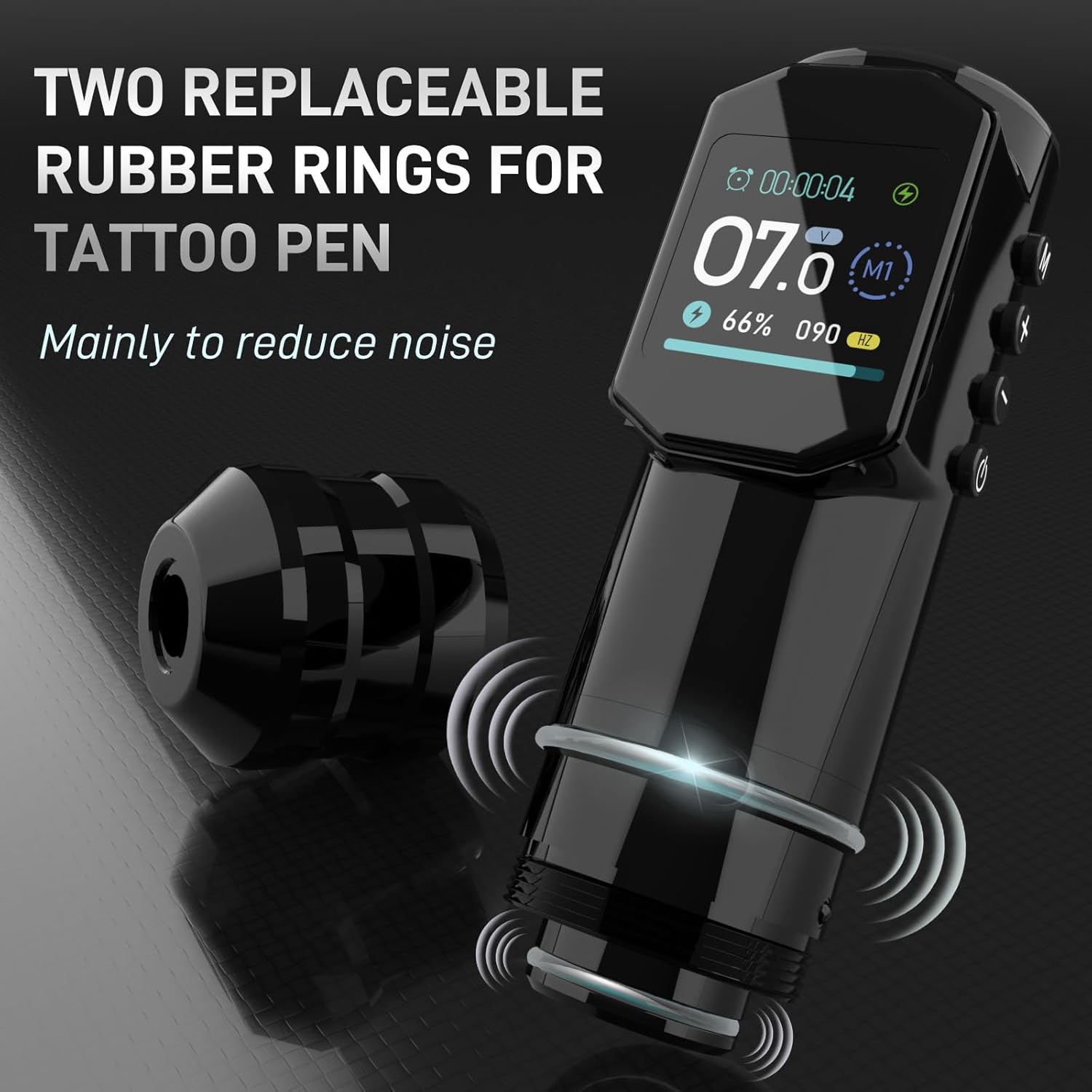 【Tattoo Pen with Two Replaceable Rubber Rings】- The one large and one small replaceable rubber ring are designed to enhance the stability, comfort, and functionality of the tattoo machine. they ensure precise operation, protect the machine’s components, and can be replaced to maintain the machine's performance and extend its lifespan