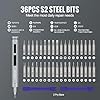 High-Quality Precision Bits: This electric screwdriver kit has 36pcs S2 steel bits, crafted with professional material and heat treatment. The gray phosphating surface provides a harder surface, great longevity, and enhanced rust resistance. Equipped with 36pcs 28mm bits and 2 pry bars, the pc screwdriver set is perfect for household tasks and handy for precision objects